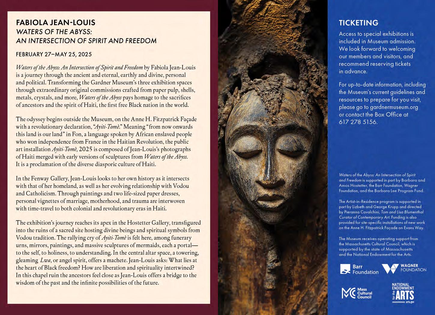 Multi-disciplinary artist Fabiola Jean-Louis’s captivating exhibition at the Isabella Stewart Gardner Museum invites visitors on a journey through the ancient and eternal, earthly and divine, personal and political. On view from February 27 – May 25, 2025, Waters of the Abyss: An Intersection of Spirit and Freedom by Fabiola Jean-Louis features original commissions from the Haitian artist, crafted from the stunningly intricate marriage of paper pulp, mineral stones, shells, metals, crystals, and more. Invoking the sanctity of Vodou and its role in Haitian liberation, these works will transform the Museum’s three rotating exhibition spaces, Hostetter Gallery; Fenway Gallery; and the Anne H. Fitzpatrick Façade, into a map of personal histories and a site of communion and spiritual portals.