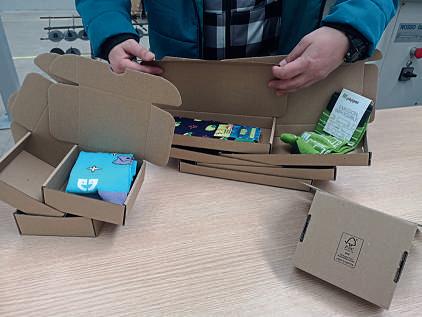After sitevisitstothe organisations, Kingly decided to providebothenterprises withthe opportunitytohelpwithfolding its FSC-certified boxes, whichhelp preserve forests and highlight illegal deforestation as well as protecting goods.