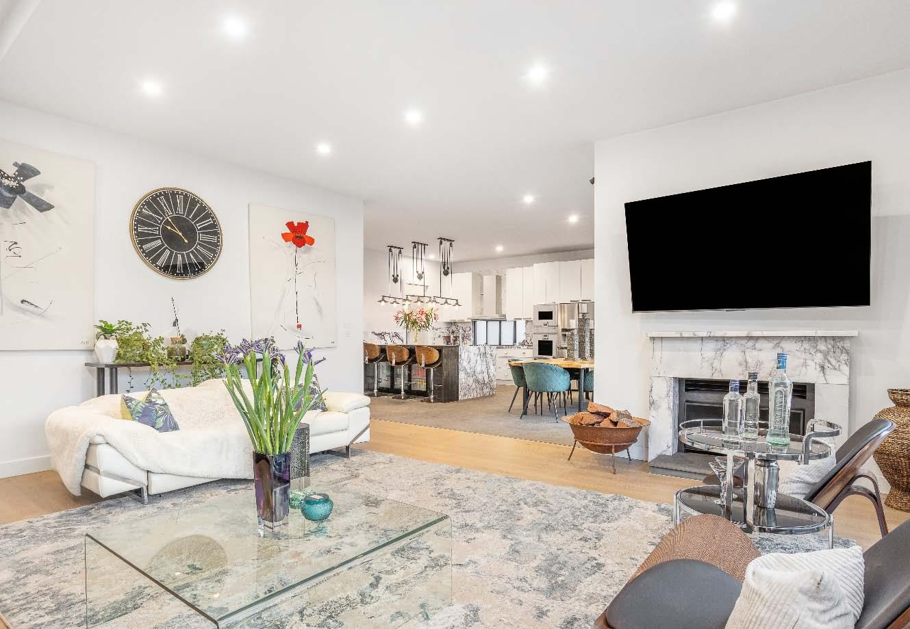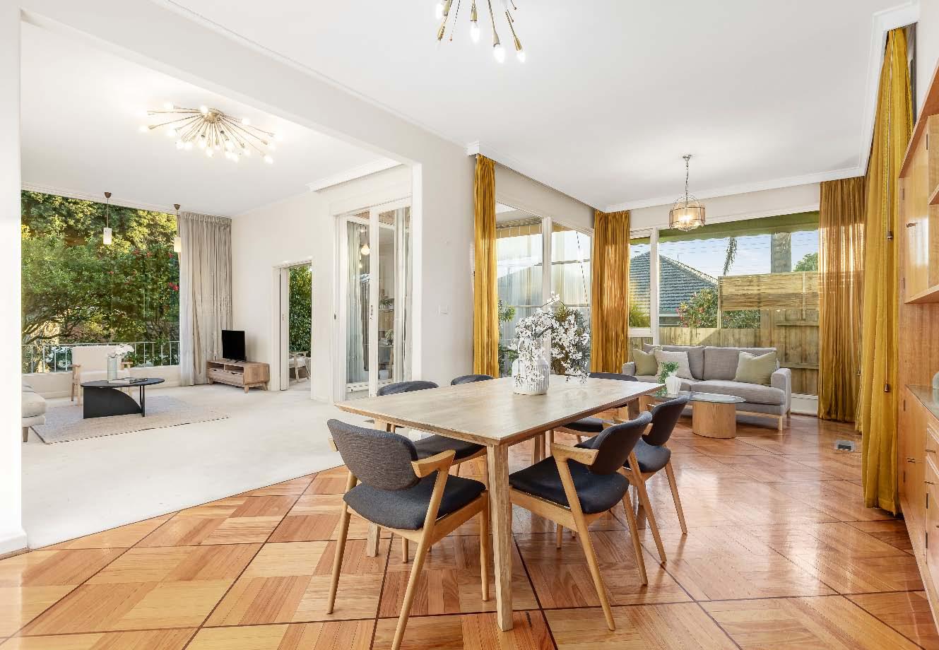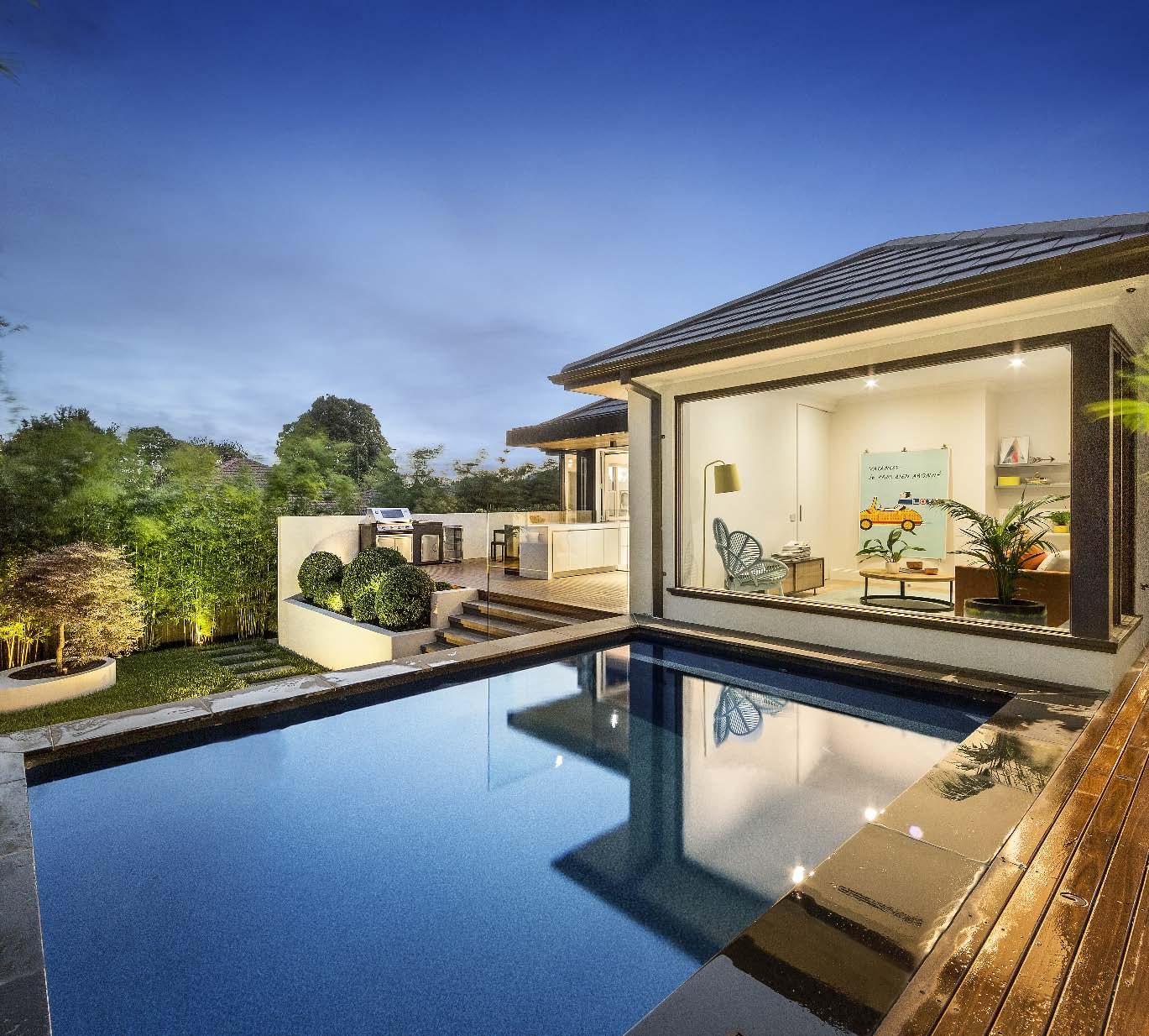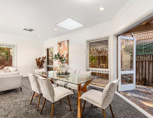 is equipped with high-end Neff appliances & is complimented by a long galley-style butler’s pantry with laundry facilities & outdoor access. An outdoor entertainer’s oasis features a covered dining zone lined with low-maintenance composite decking, complete with a built-in gas BBQ suite with prep bench & fridge & retractable sides to create a fully enclosed outdoor room. Surrounding the deck: lush garden space & solar-heated pool/ spa hybrid. Generous storage throughout, offstreet parking behind lock-up gates & climate control of hydronic heating & central cooling complete this artfully renovated family home.