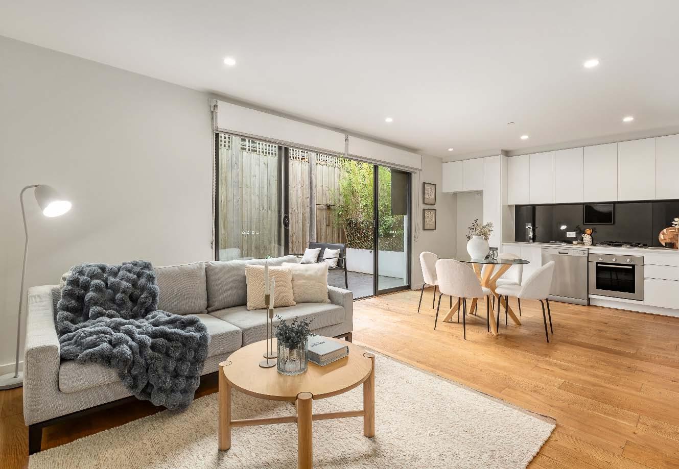 Don’t miss out on an incredible lifestyle opportunity in this stylishly appointed ground floor sanctuary with the added bonus of a large private courtyard. Whether you’re a first home buyer tapping into the market or a savvy investor looking to add to your portfolio, this low maintenance terrifically located contemporary abode in a boutique block of just twelve will not disappoint. Pristine timber flooring flows seamlessly from the entrance hallway throughout the naturally light filled open plan living & dining domain with sliding doors opening out to a northerly oriented full width paved alfresco courtyard - ideal for indoor-