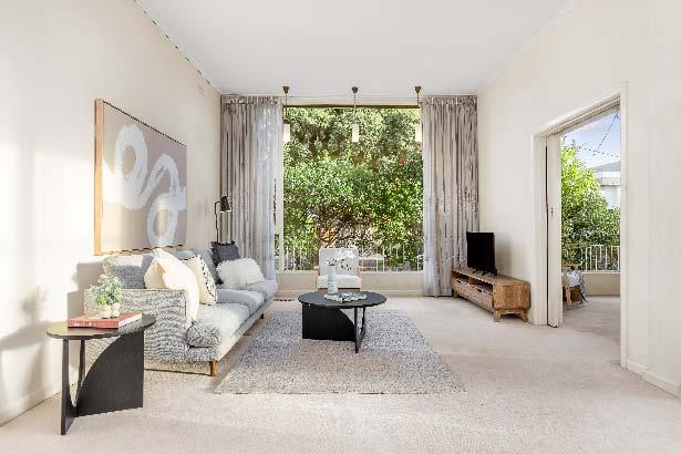 fridge & dishwasher. The spacious robed bedroom enjoys the same leafy views & is serviced by a stylish bathroom with shower-over-bath & laundry facilities. Climate control of a split system & ceiling fans, secure intercom-monitored entry & covered off-street parking complete this easyliving turnkey home. Delivering a lifestyle of ease & convenience, it’s just a short stroll to trams, Balaclava Station, Carlisle Street cafés, Acland Street, St Kilda Botanic Gardens & the beach.