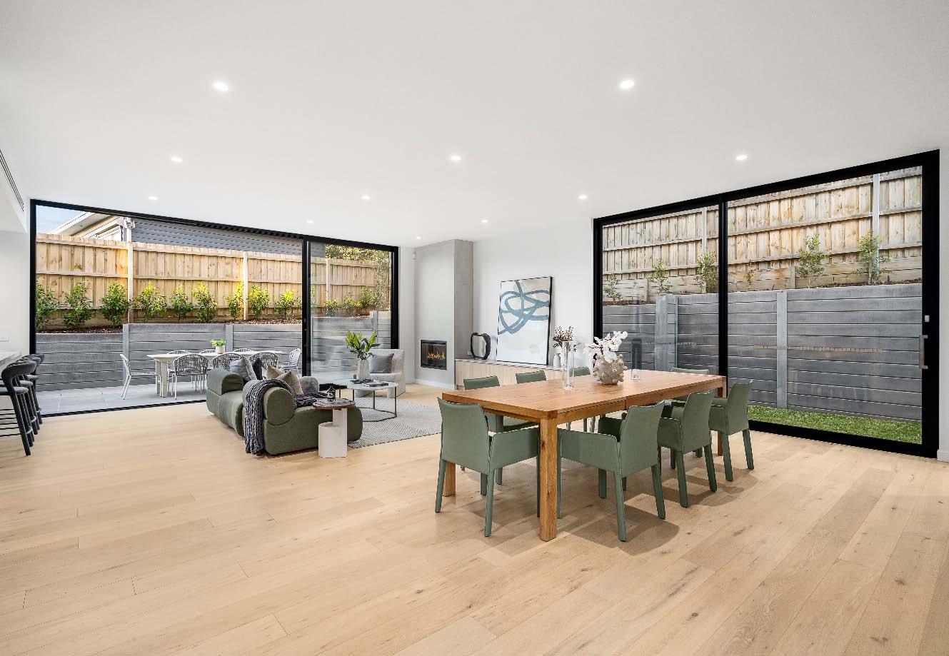 or relaxing in a private, low-maintenance setting. The main bedroom, privately located on the ground floor, boasts an open wardrobe & a double ensuite. Upstairs, a generous second living area is surrounded by three bedrooms with built-in robes, a contemporary bathroom & a separate toilet—ideal for family functionality. A dedicated study area, laundry, powder room, secure garage, additional off-street parking & zoned heating & cooling complete the picture of lifestyle excellence. Superbly located just a short stroll to GESAC, McKinnon Primary & Secondary schools, parks & public transport.