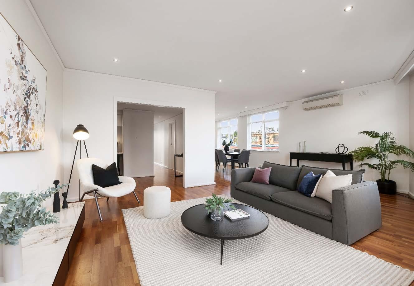 heating/cooling, ceiling fans & off street parking. This spacious apartment is ideally located for a fabulous inner city lifestyle of convenience close to popular Carlisle Street’s shops, cafes, night life & trams & Balaclava Station.