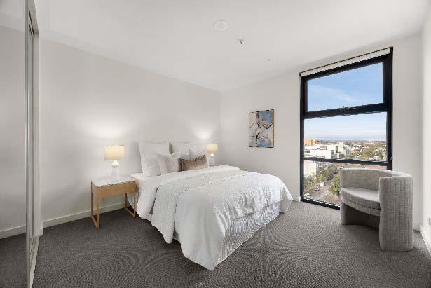 outlook, while the full-size kitchen impresses with its gas cooktop, dishwasher, Euro laundry & generous storage. Both bedrooms are generously proportioned & fitted with built-in robes, doubleglazed sliding doors & electric blackout blinds, while the stylish bathroom showcases quality finishes. Additional features include a secure lock-up garage with bonus storage space, efficient split system heating & cooling & the ease of modern, low-maintenance living.