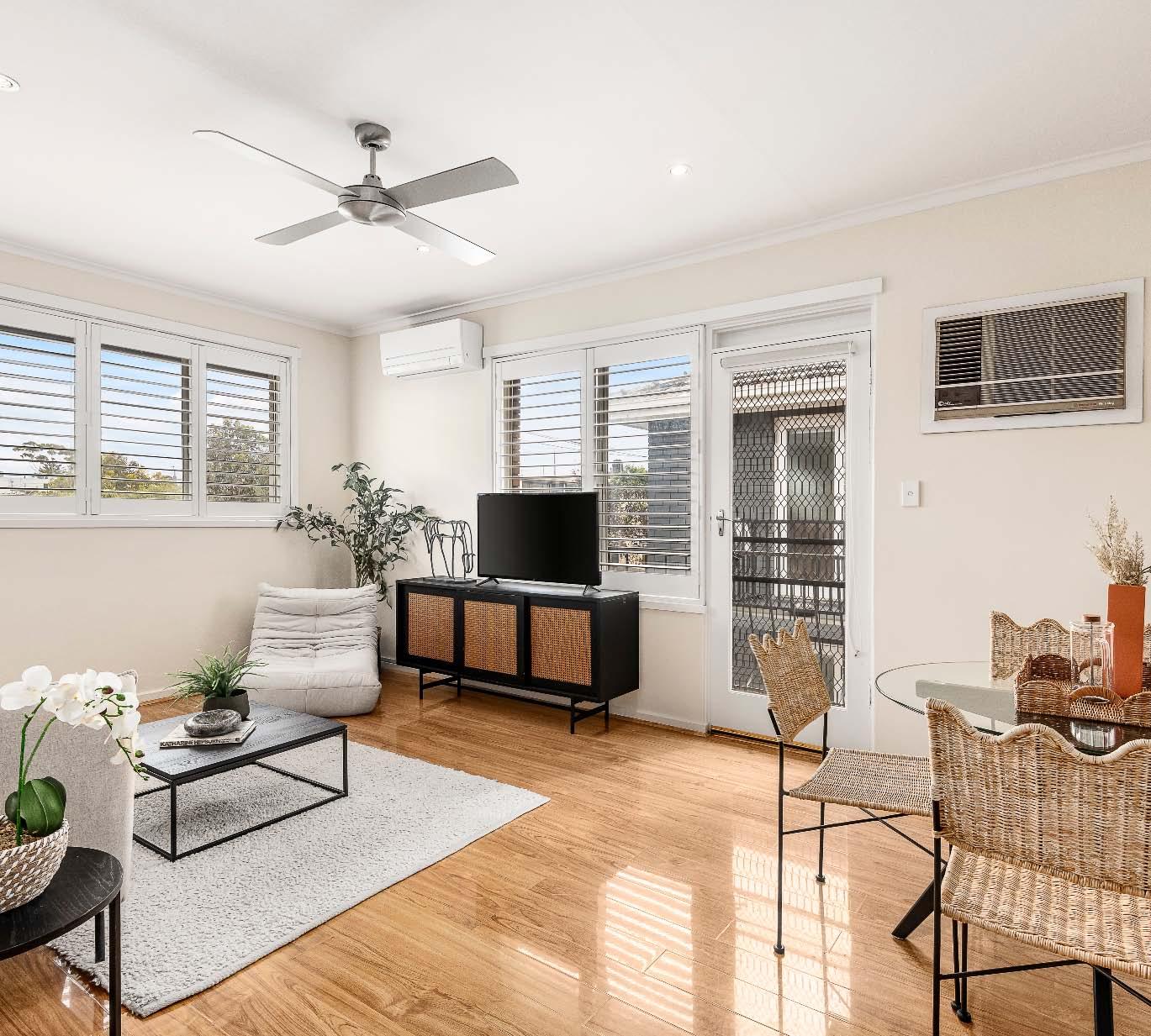 With its unbeatable location, stylish updates & practical design, this updated dapper apartment represents an excellent opportunity for savvy investors & or buyers looking for their next home. Comfort & space are rarely combined to such perfection, yet this two bedroom gem does so effortlessly. The layout is practically laid out with a massive living room flowing onto a balcony, a meals area in the kitchen, two extra-large bedrooms with built-in robes & a perfectly updated bathroom. With reverse cycle heating & cooling, ample laundry space & your own off-street parking space, this apartment is ready to move in without