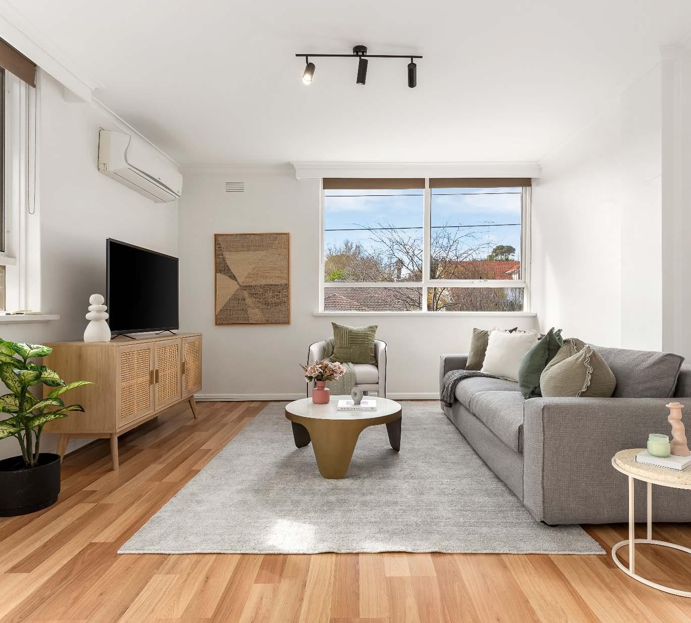 built-in robes & stylish shutters & are serviced by a central bathroom with laundry facilities & a separate toilet. Complete with covered offstreet parking, split system climate control & secure intercom-monitored entry, this brilliantly located apartment is surrounded by the incredible shopping & dining spots of Balaclava & Ripponlea, a short walk to Alma Village & metres from Balaclava Road’s city-bound trams.