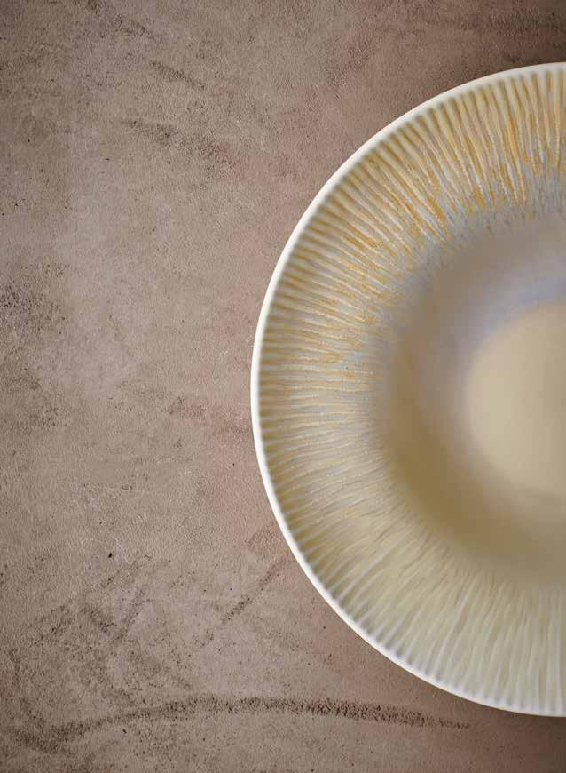 The same counts for tableware finished with a reactive glaze. You’ll never catch two exact copies, but within the same collection they’ll all have something in common. In this catalog, all ranges that feature a reactive glaze are marked with the following symbol: