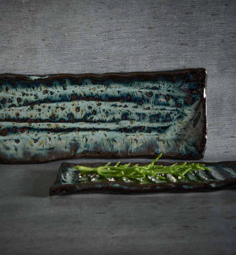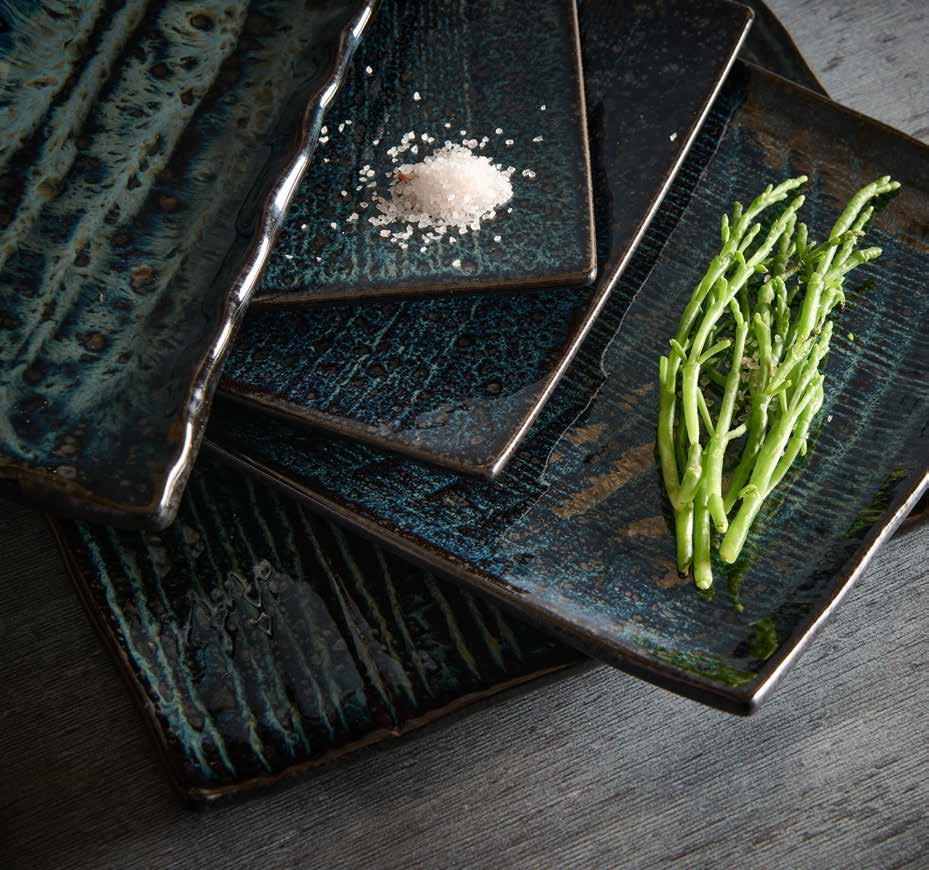 serving oriental dishes. Umi is characterised by a mix of soft and strong textures and dark green and blue shades. Take the presentation of your sushi or other oriental dishes to a whole new level with Umi!