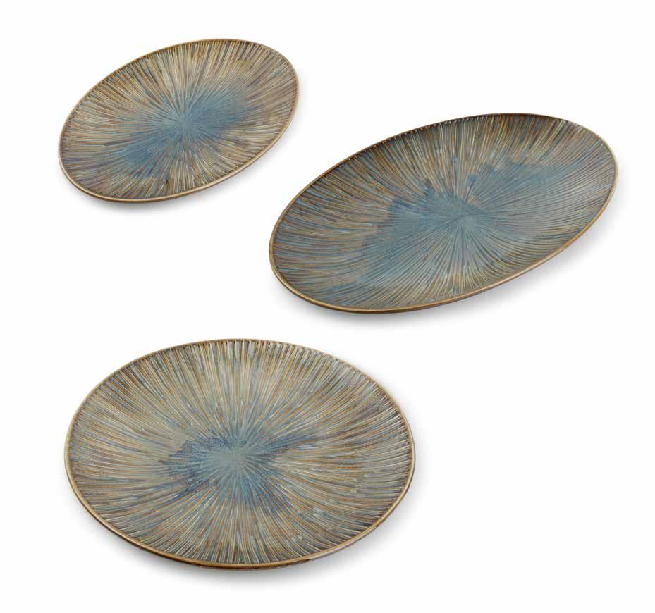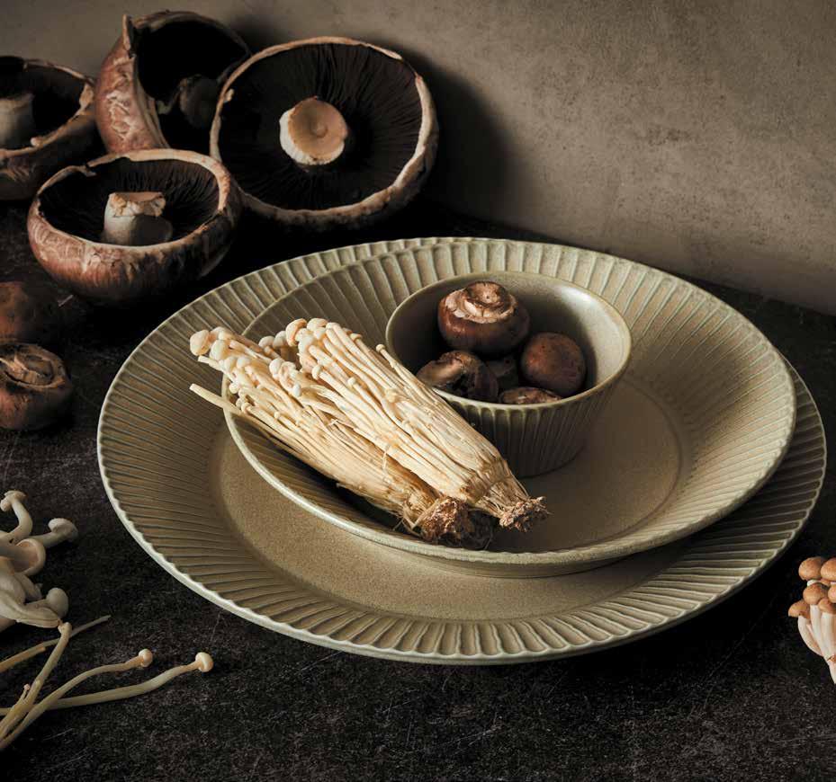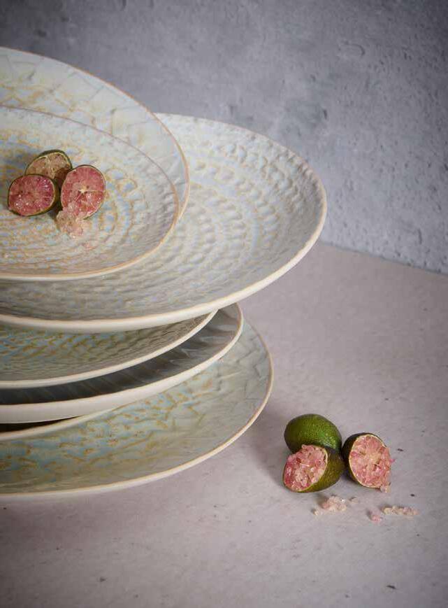Arco reflects the vigor of ancient fossils as the subtle ribbed shape on this range embodies the timelessness of majestic ammonites. Arco combines a matte, reactive glazed finish along with a slightly raised irregular rim for a unique touch. Above