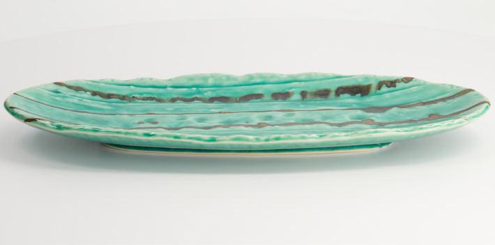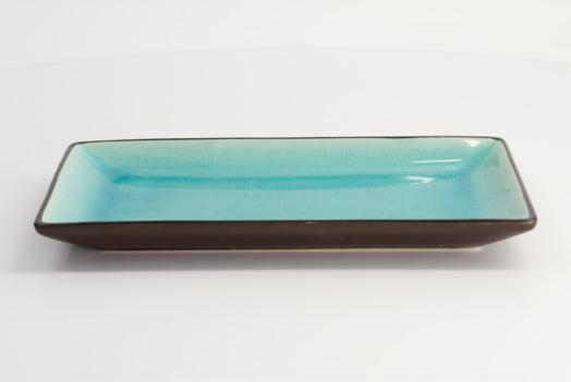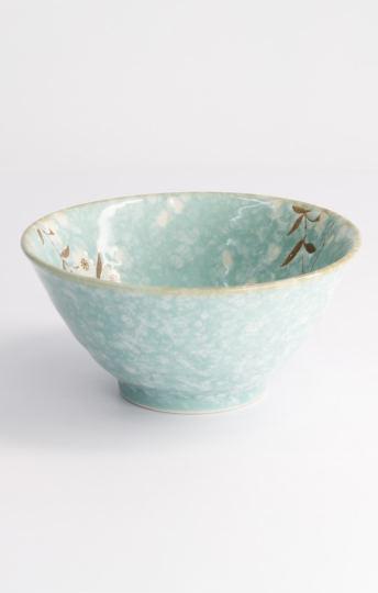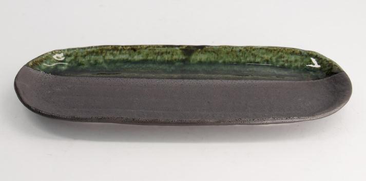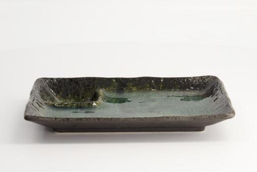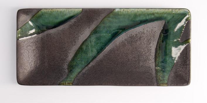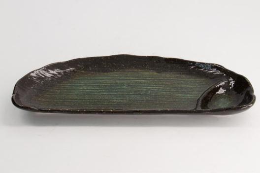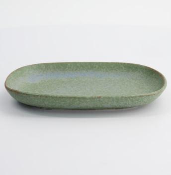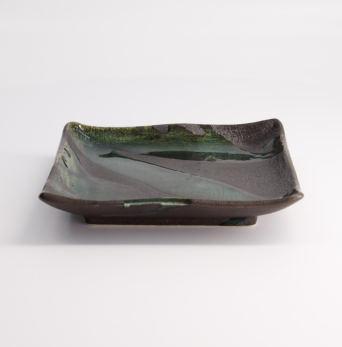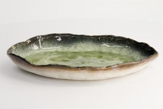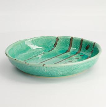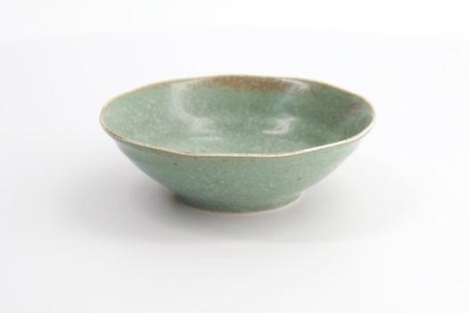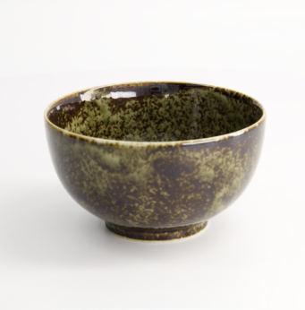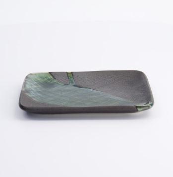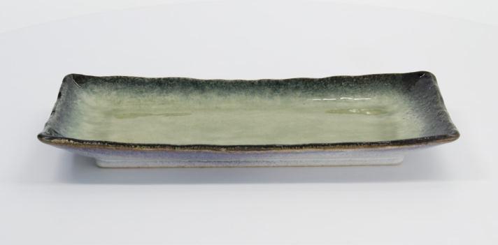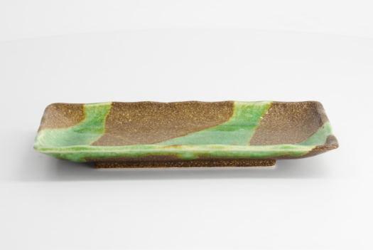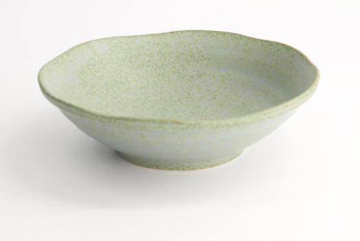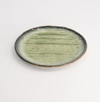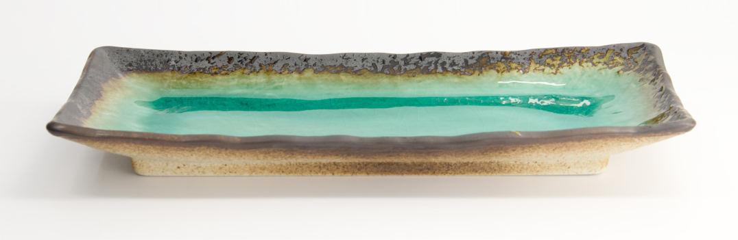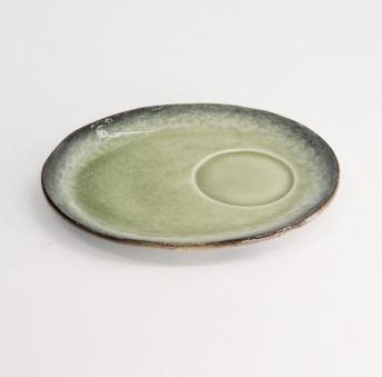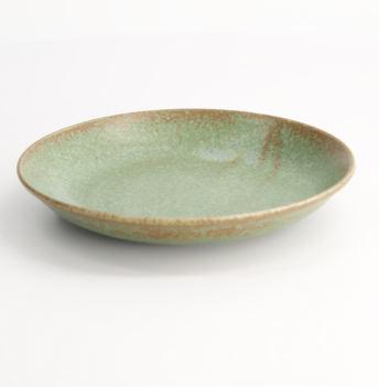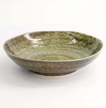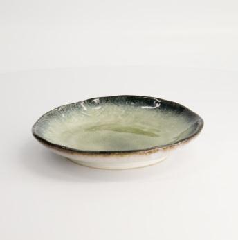A reactive glaze gives this beautiful Japanese dinnerware its striking high gloss green shade with unusual variations of color and texture. The glazing technique adds a rich feel and makes each piece of high quality Japanese stoneware unique. Its organic shapes and luxurious appearance will add a gorgeous element to your table setting.