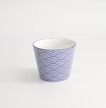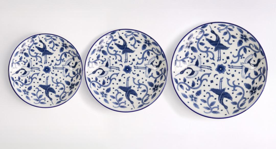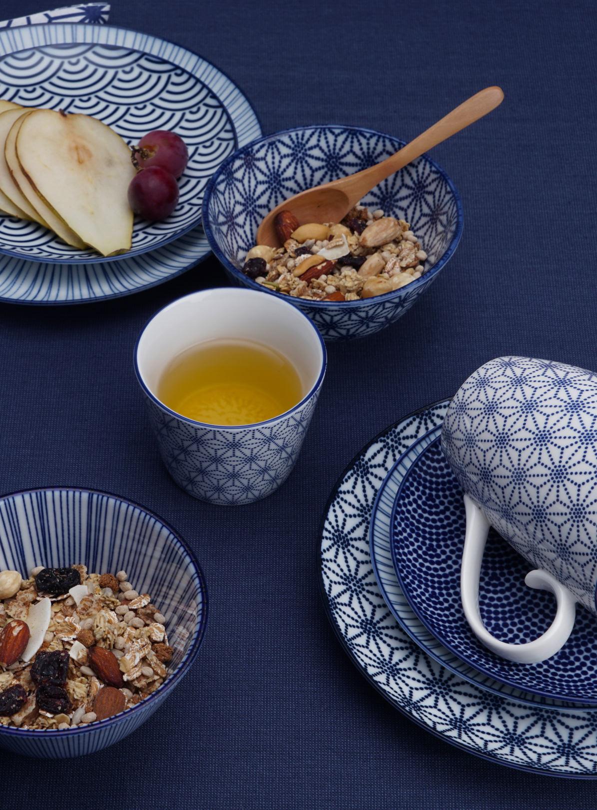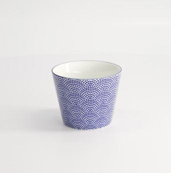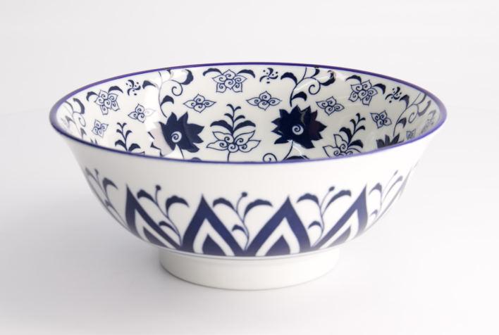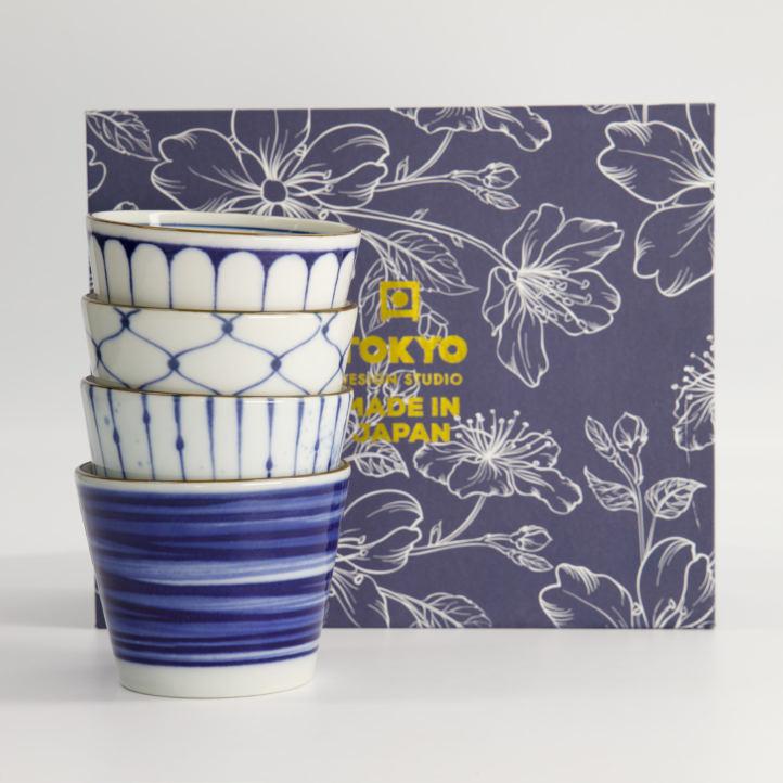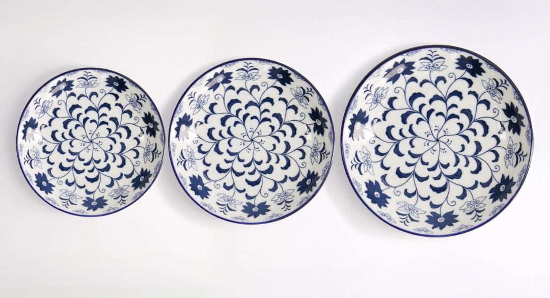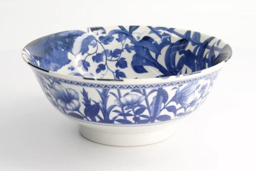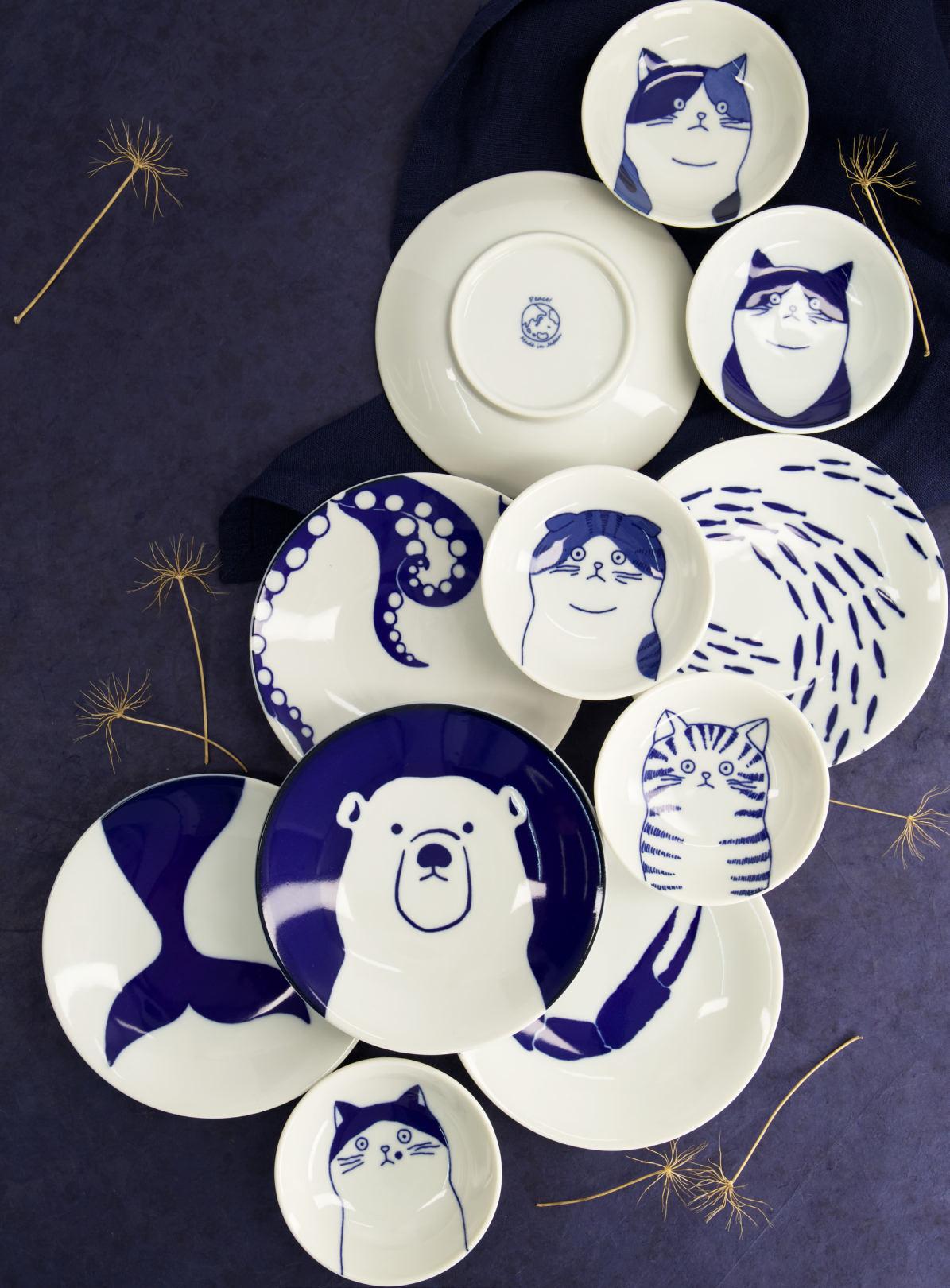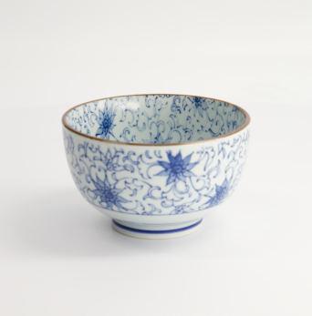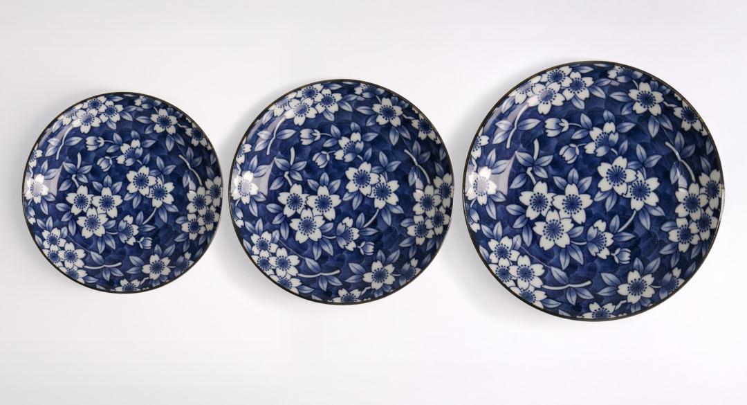 This succesful collection is created using a technique called "sometsuke." This technique involves painting cobalt blue pigment onto the white porcelain surface before glazing and firing it. The products often feature intricate floral motifs, such as cherry blossoms, peonies or chrysanthemums, The combination of blue and white is highly prized in Japanese culture and is often associated with elegance, simplicity, and a sense of tranquility.