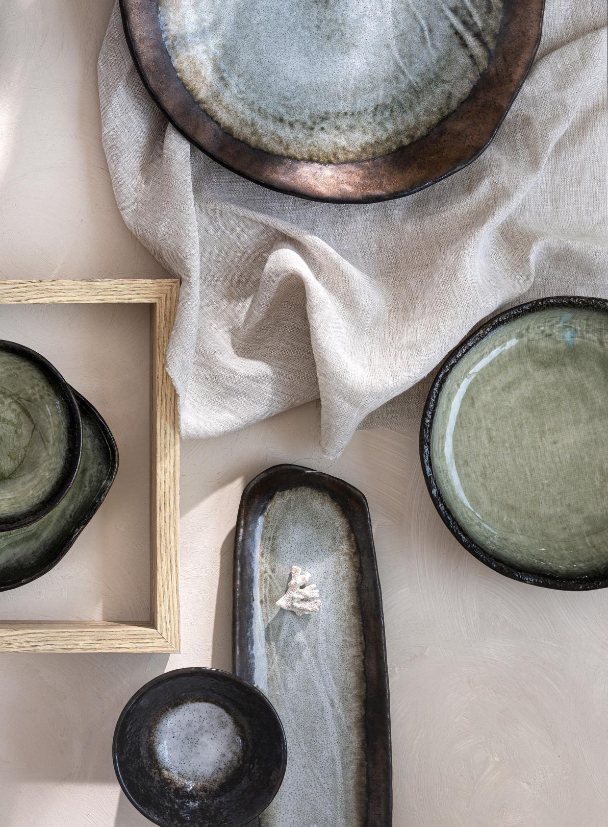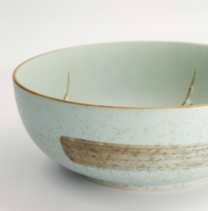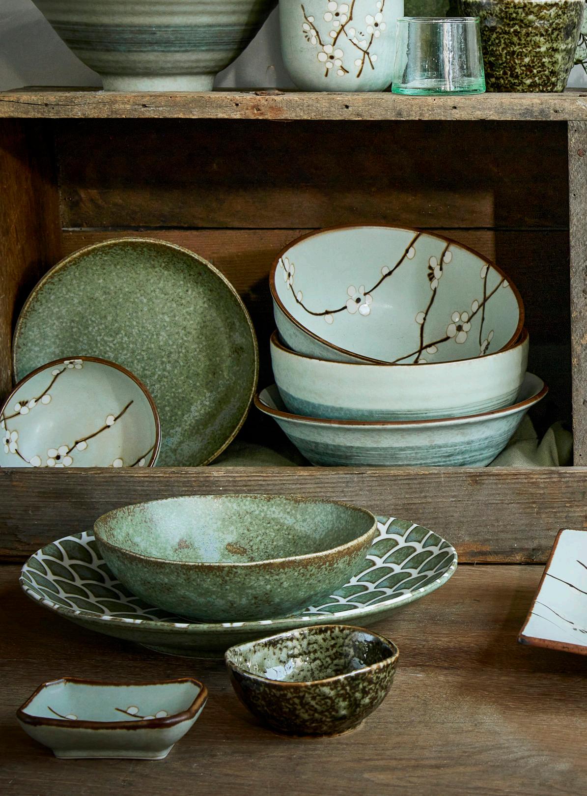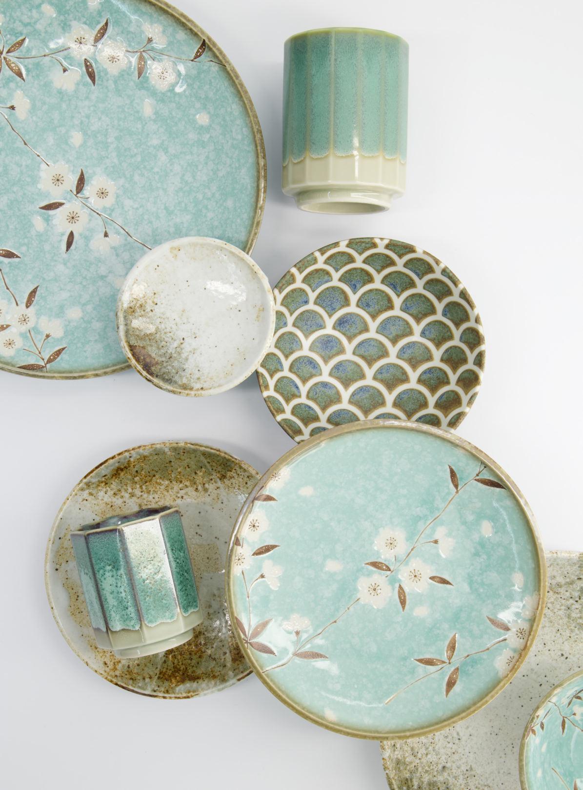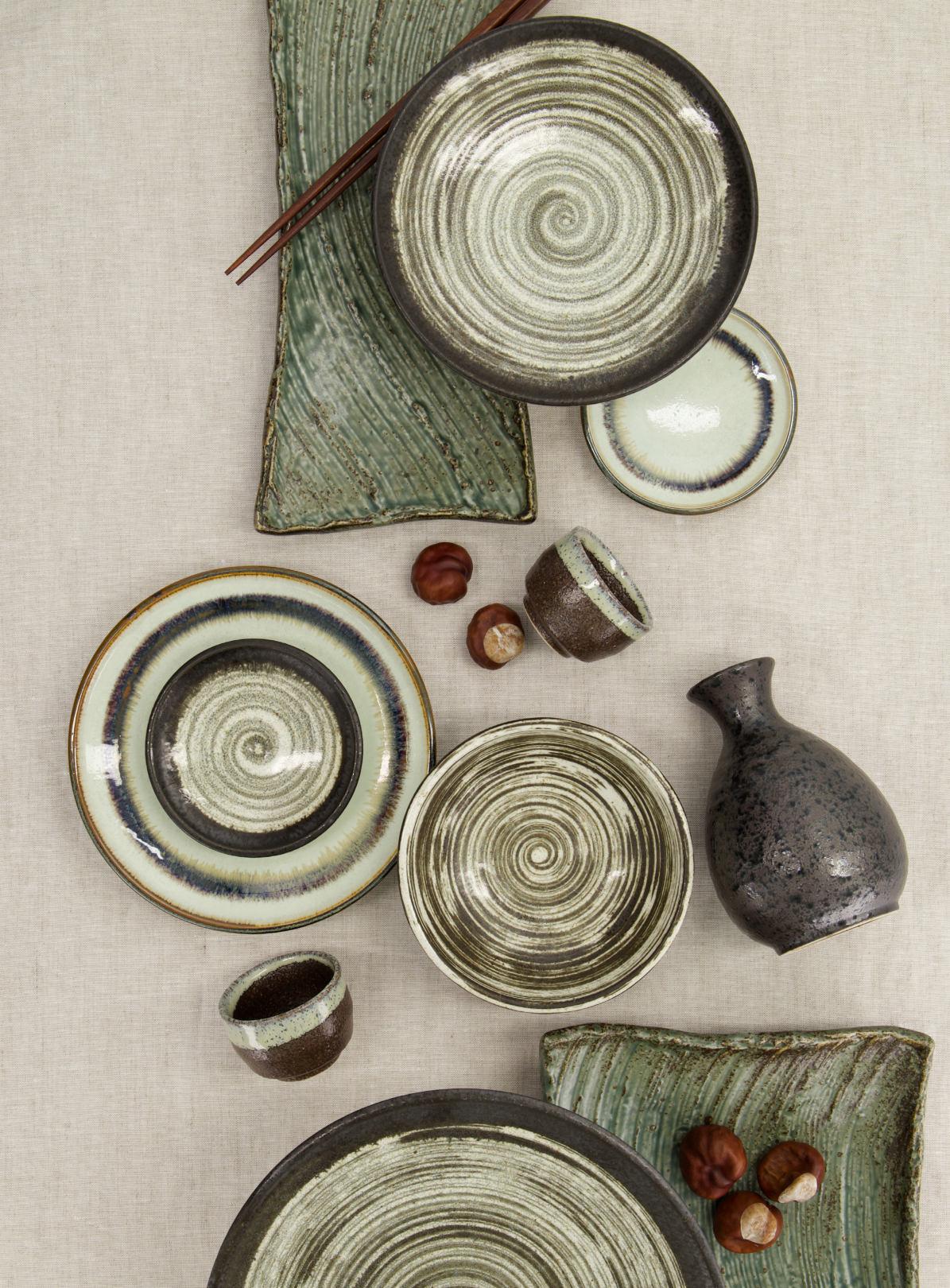 Each piece of the Yukishino collection is meticulously handcrafted, from the glazing process to the careful application of colored details. This attention to detail ensures a unique and distinctive finish that celebrates the natural irregularities and textures found in nature. The subtle shades of green and sand has the power to transition from rustic charm to modern elegance, infusing the experience with a sense of warmth and refinement, and maintaining its quality over many years.