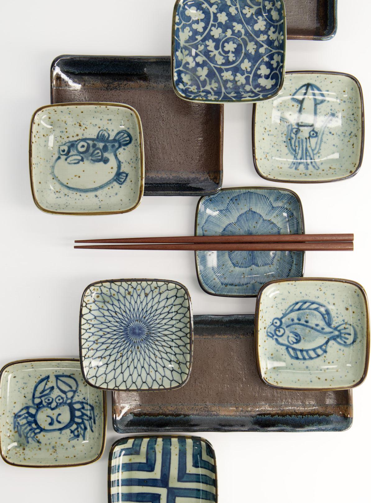 “Natsu,” meaning summer, inspires a range of tableware designs characterized by cool and refreshing colors, such as blue and white, and motifs that evoke the summer season, like fireworks, ocean waves, and summer flowers. These designs aim to enhance the dining experience by creating a visually and emotionally resonant connection to the warmth and vibrancy of summer. The use of “natsu” in tableware not only highlights the beauty of seasonal change but also reflects the Japanese aesthetic principle of finding beauty in the natural world and the transient nature of life.