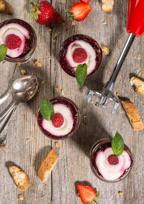 Le bamix® est l‘appareil parfait pour de nombreuses missions. Il peut être utilisé en toute sécurité aussi bien dans de petits récipients et verrines que dans des plats chauds sur la plaque de cuisson. Le bamix® est équipé d‘un boîtier doublement isolé et totalement étanche pour plonger en profondeur dans des liquides chauds ou froids.