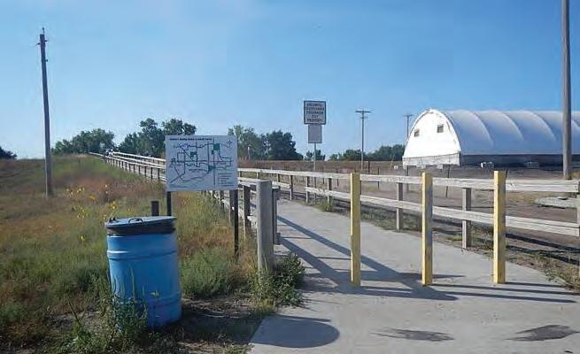 West Barton County Road and Locust Street. The Great Bend Levee Trail runs atop the flood control levee on the north bank of the Arkansas River on the edge of Great Bend. Users will encounter rural, suburban and industrial environments. The trail offers views of the Arkansas River and nearby