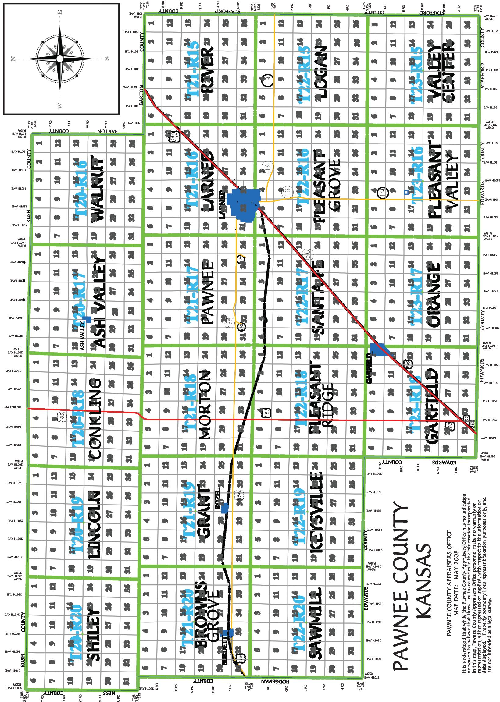 Pawnee County, Kansas was created in 1867 and named for the Pawnee Indians, who inhabited the area. Pawnee County currently includes the cities of Garfield, Burdett, Rozel and Larned.