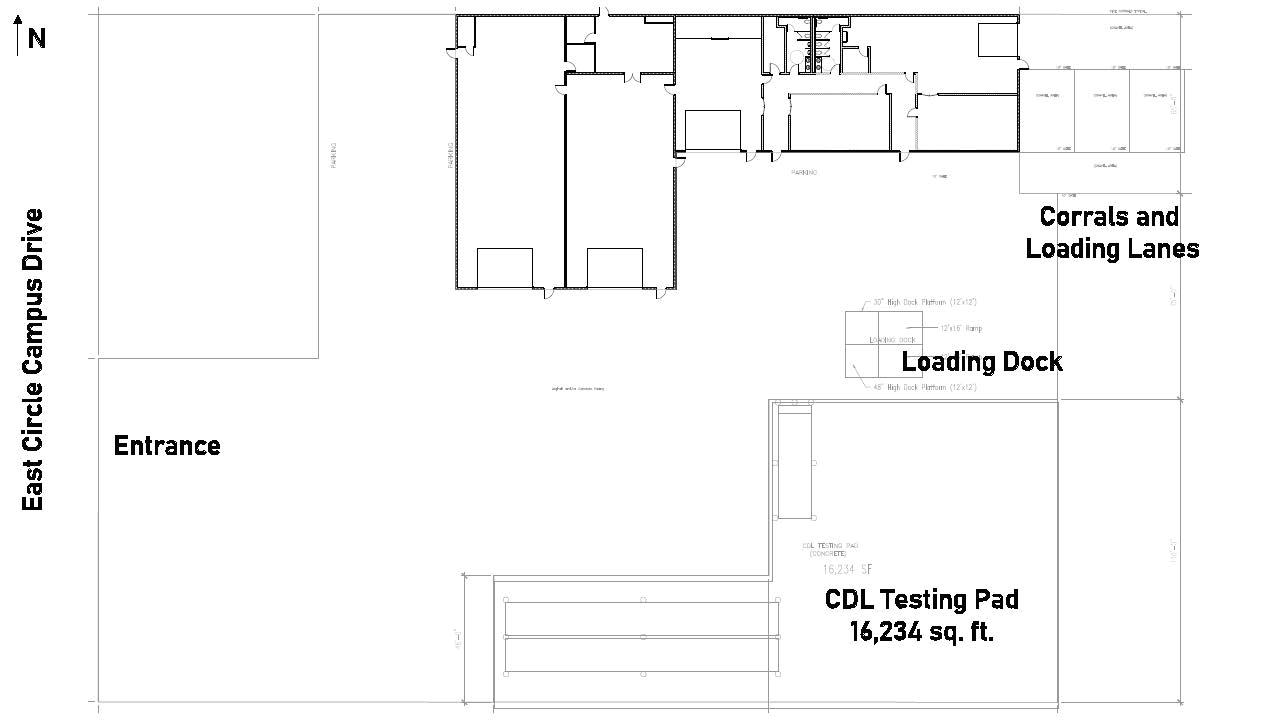 There will be three multi-use classrooms, three dedicated shop spaces, CDL vehicle and equipment storage, farm animal corrals, coordinator and instructor offices, an equipment loading dock, and a CDL examination testing area to provide licensure testing locally.