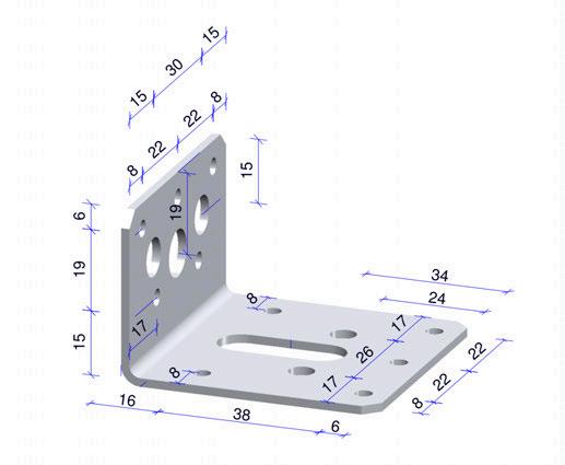 Het L-anker is voorzien van een gatenpatroon dat bedoeld is om te bevestigen aan de onderconstructie: Gat 1 is bedoeld voor de verankering van de stelregel. Hierbij dient wel rekening gehouden te worden met eventuele randafstanden van de betonvloer en eventuele reductie op de ankers t.b.v. de h.o.h. afstanden. Gat 2 is bedoeld om de beugel te stellen op de juiste maatvoering. Daarnaast wordt deze gebruikt om de opwaai te verankeren.
