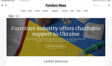 The editor’s decision is final. All material submitted for inclusion in Furniture News is done so entirely at the owner’s risk and no responsibility is accepted for the safekeeping or return thereof. Advertiser information is reproduced in good faith and Gearing Media Group accepts no responsibility in respect of adverts appearing in the magazine, and the magazines expressed do not necessarily reflect the publisher’s views. The Publisher accepts no liability for any loss arising from an advertisement’s late or non-appearance.
