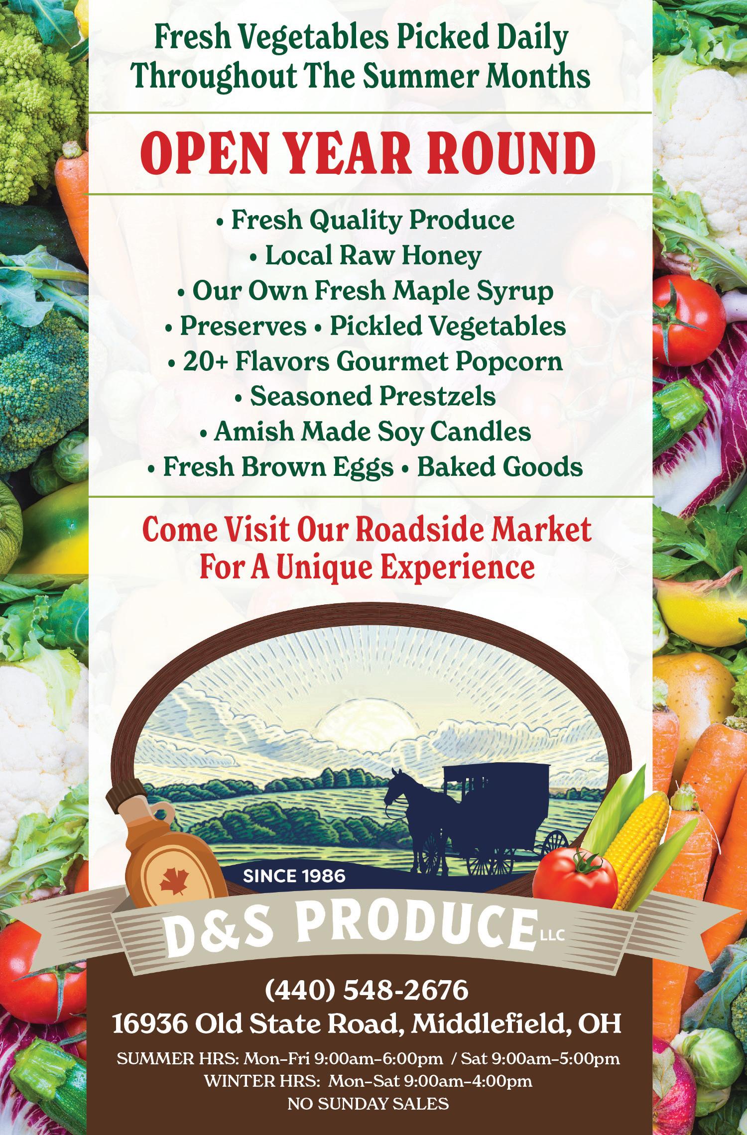 D & S Produce Raymond & Sara Ann Byler 16936 Old State Rd. Middlefield 440-548-2676
