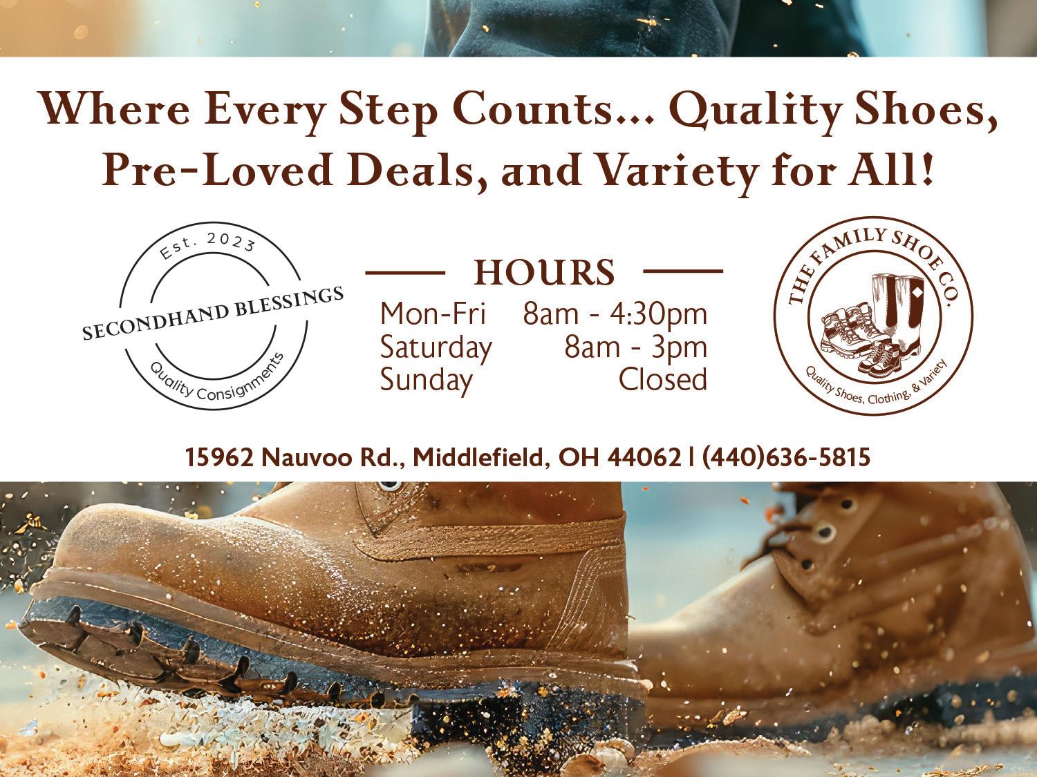 Stoltzfus Footwear & Variety/The Barn Steven Lee & Mary Stoltzfus 18125 Madison Rd. Middlefield 440-548-2545 The Family Shoe Mike Slaubaugh 15962 Nauvoo Rd. Middlefield 440-632-5815