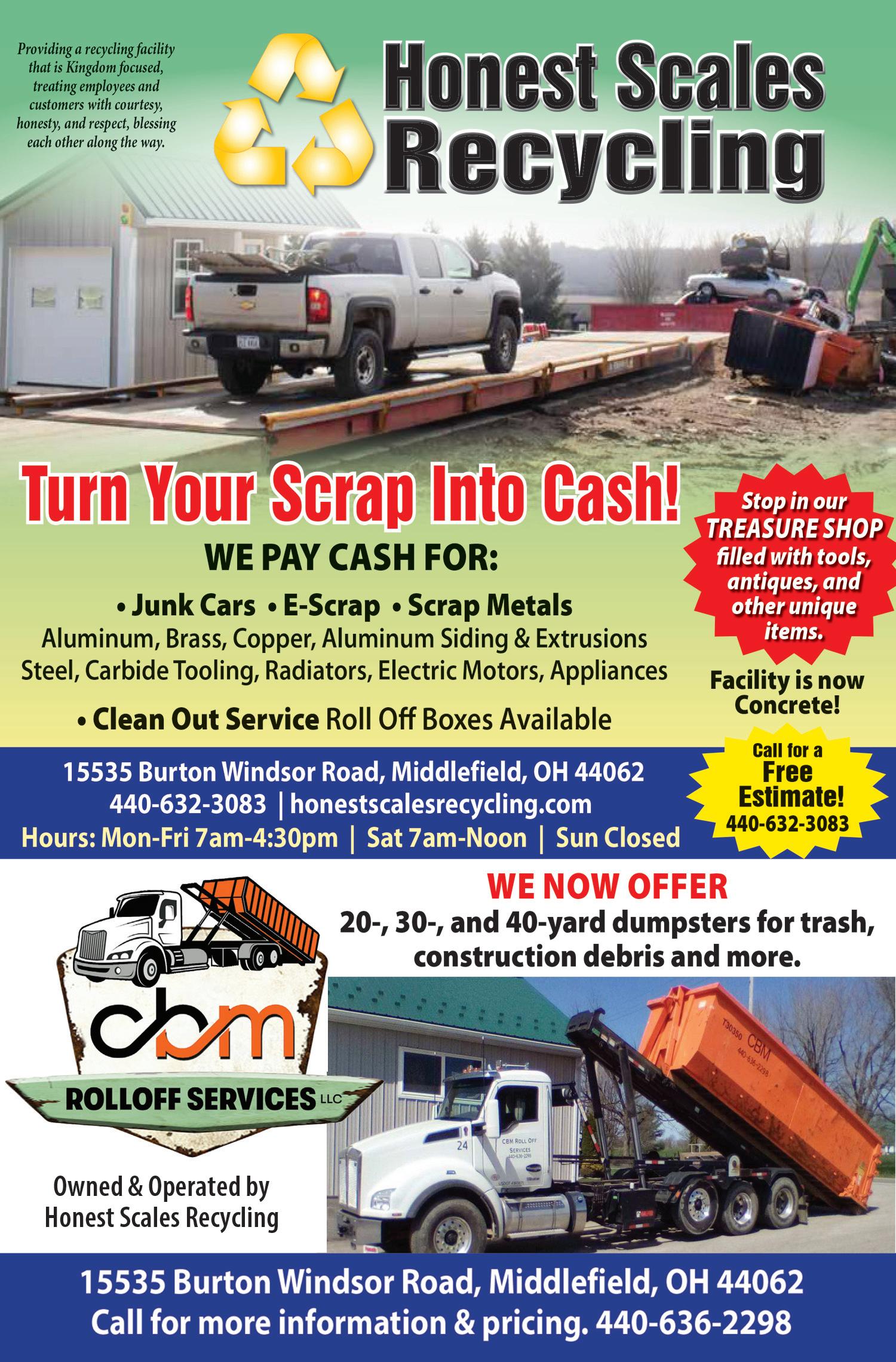 Honest Scales Recycling LLC Paul C. Miller 15535 Burton Windsor Rd. Middlefield 440-632-3083
