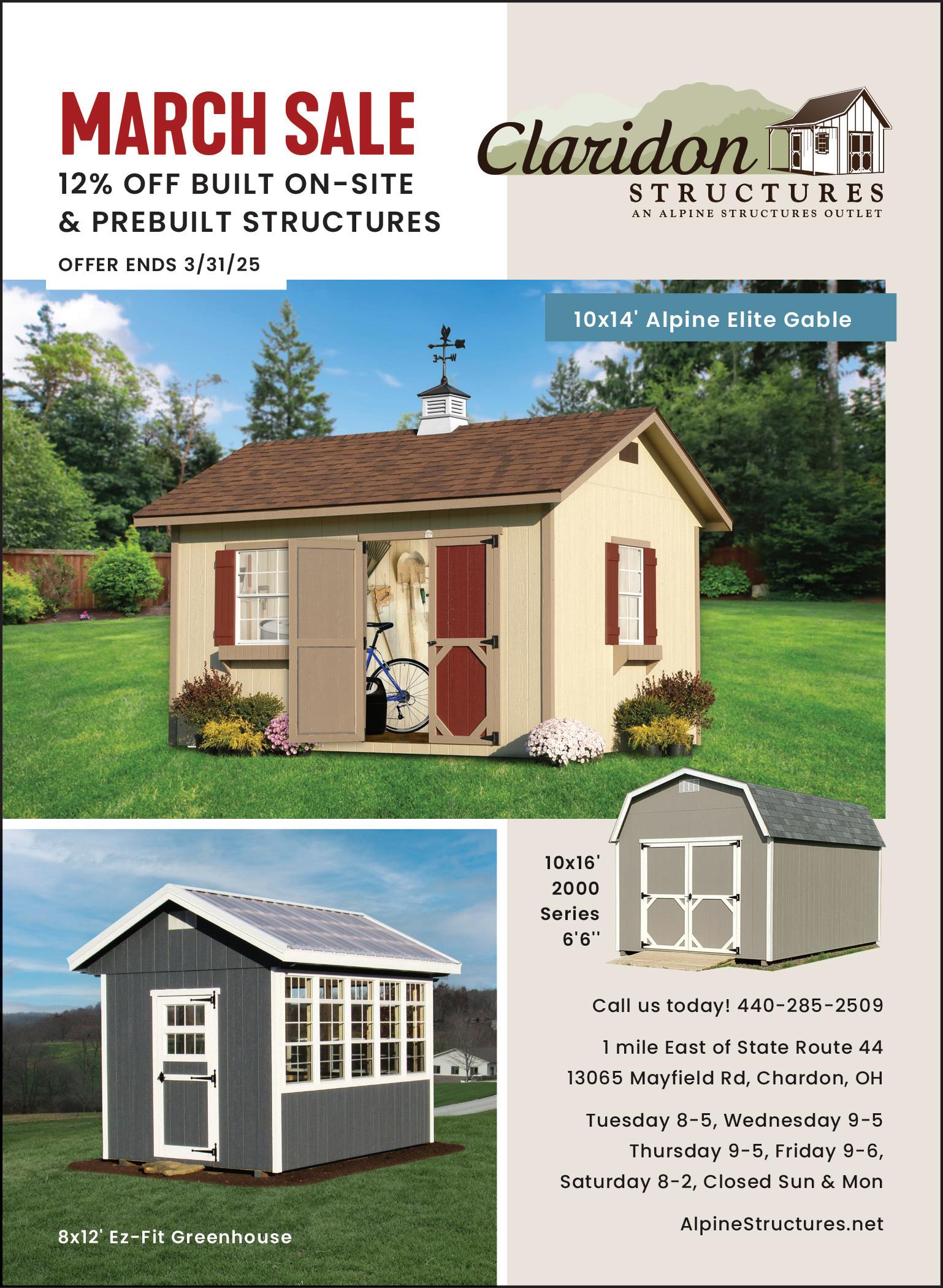 Munson Township’s indoor flea market will be held at the Munson Town Hall and Fire Station Bay, 12210 Auburn Road. The $1 entrance fee for shoppers will go toward the Munson Township Scholarship Fund. Youth 12 and under are free.