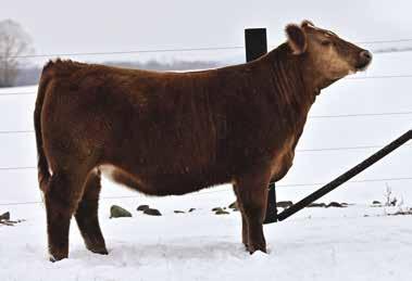 Fancy is the first thought as you walk up on this bull. So many options with this bull being a purebred. With a actual birthweight of 68 lbs, use him on clubbies, Angus, and breed up those 3/4 blood to make purebreds. Bet On Red, Angel 7113E, Loverboy and Desa Rae; Athletic, smooth, sleek and great numbers, calving ease!