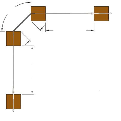 Corner applications require a double post system with posts placed no further than 3.5" apart and cable not exceeding 45˚. A tensioner is required on each end post. The maximum run length is 15'. Wood systems require post protector sleeves to keep the cable from biting into the wood.