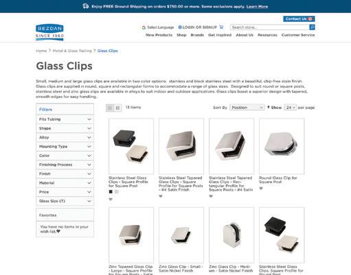 Glass clips are available from small to large in round, square and rectangular forms. Plus, find zinc clips for a cost effective option for powder coating.