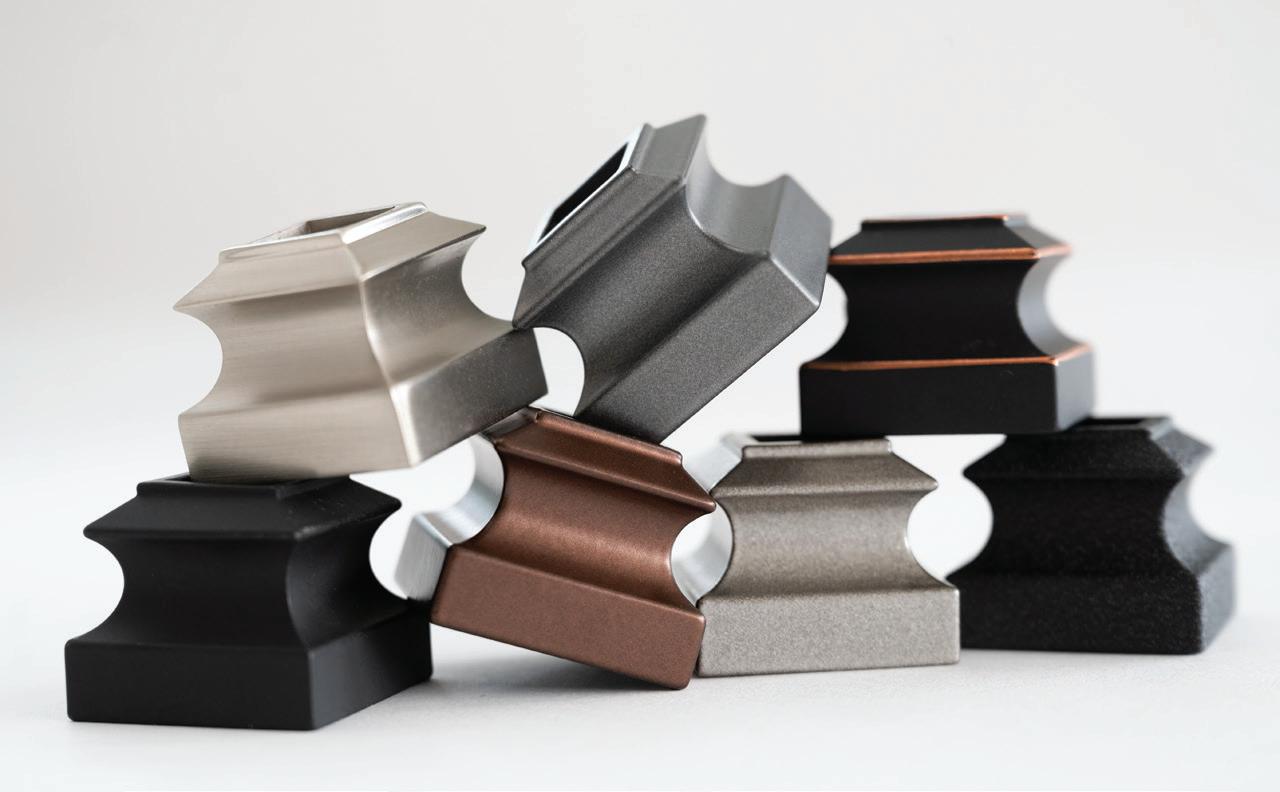 Powder coated baluster collars are diecast aluminum; plated collars (BS finish) are zinc alloy.