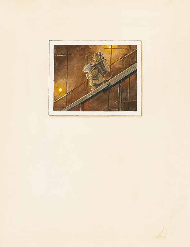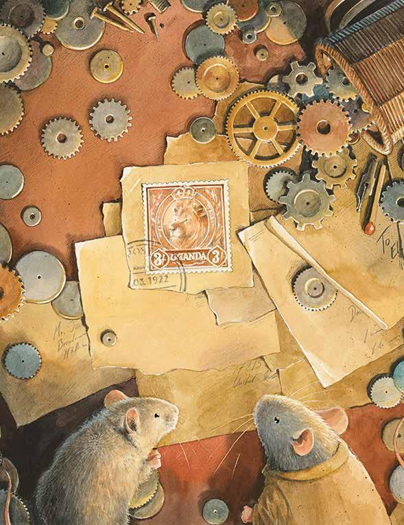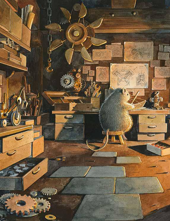 «Ho un nuovo carico per te!» rispose lui con un sorriso, indicando fiero la propria cesta strapiena. Un attimo dopo, il contenuto era sparso sul pavimento. Un guazzabuglio delle cose più disparate, tutte rubate agli umani: viti, ingranaggi, fili di ferro. Dopotutto, lei era un’inventrice e potevano tornarle utili per il suo lavoro. Nel tempo aveva costruito per le altre arvicole tantissime macchine: ruspe, trivelle da sabbia e scavatrici cingolate.