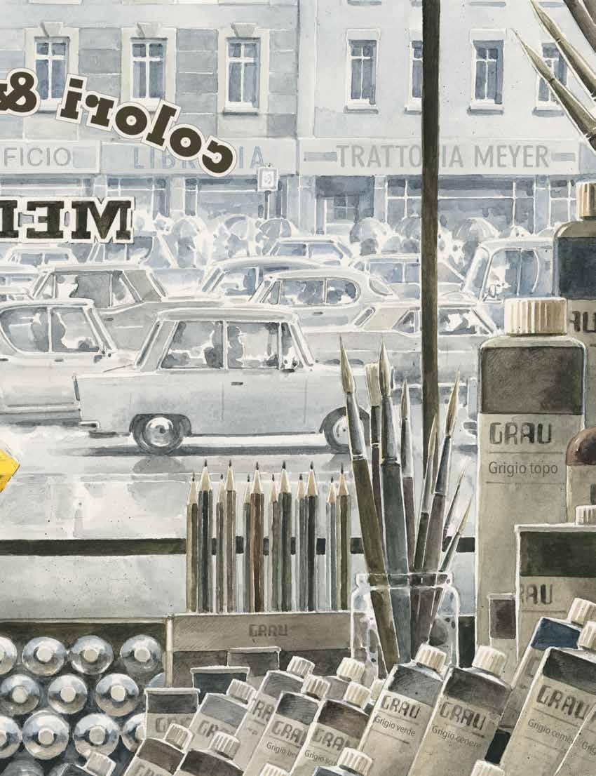 Robin cercava colori con lo sguardo. Dietro l’angolo di ogni edificio grigio c’erano, però, solo altre strade grigie, piene di macchine grigie, insegne grigie e persone grigie. Persino in un negozio di vernici erano esposti solo tubetti e barattoli di grigio. Grigio topo, grigio antracite, grigio granito.