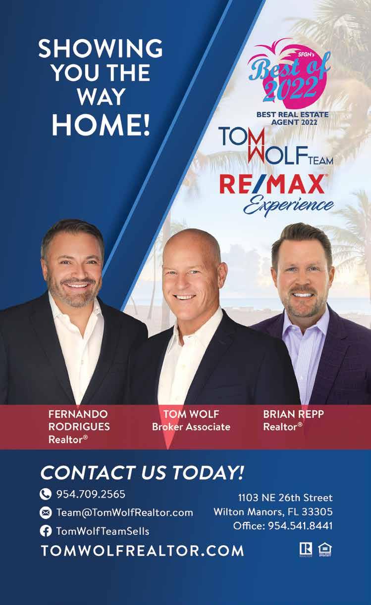 Tom Wolf Team at RE/MAX Experience 1103 NE 26th Street, Wilton Manors, FL 33305 fernando@tomwolfrealtor.com