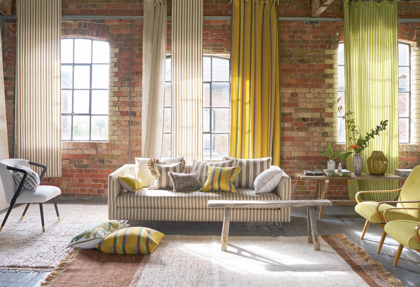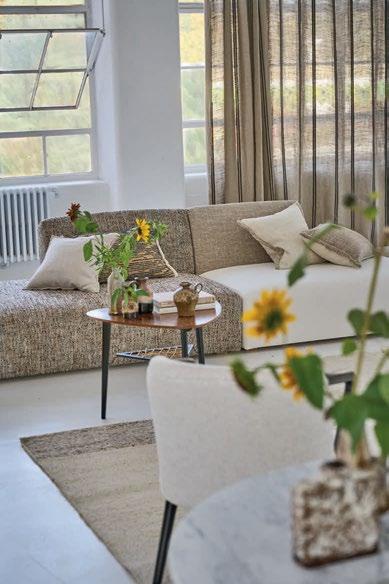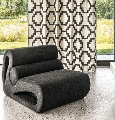 JAB Anstoetz Group setzt seit 1946 auf Interiordesign mit edlen Stoffen. Seit 25 Jahren ist die Marke Chivasso Teil der Gruppe, die neue Kollektion „Let’s celebrate“ feiert die langjährige Zusammenarbeit. Beim Thema Minimalist Luxury dominieren Naturfarbtöne von Creme bis Anthrazit. Ein Einblick: Der Vorhang „Celebrity“ zeigt große rautenartige Muster, das Chenille-Gewebe des Sessels ist dank einer speziellen Technologie besonders resistent gegen Verschmutzungen.