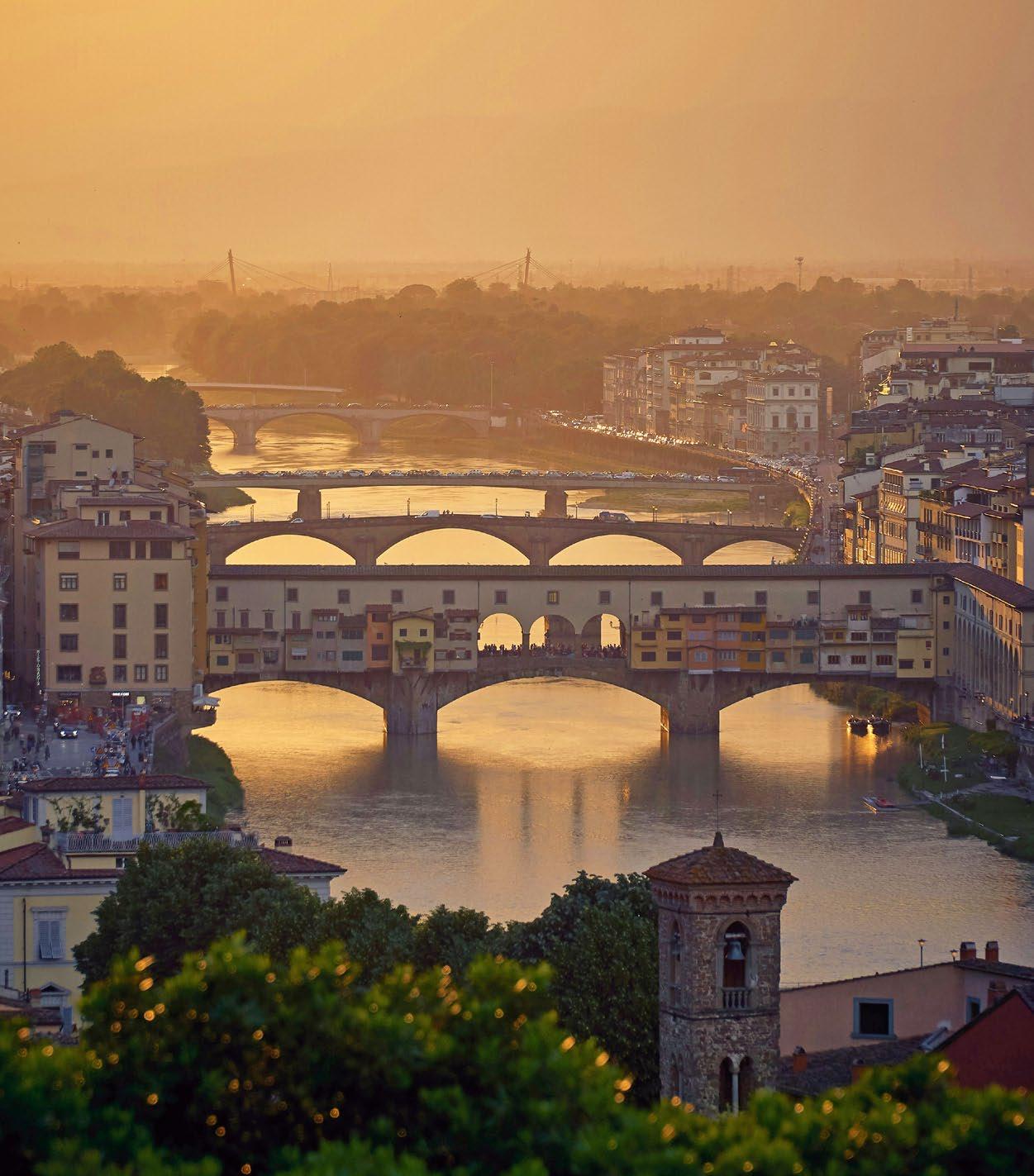 Ponte Vecchio es el puente más famoso de Florencia. Desde hace siglos, sobre el río Arno se suceden las tiendas de joyeros y orfebres. En este lugar, la artesanía y la vitalidad se entrelazan de la forma más bella.