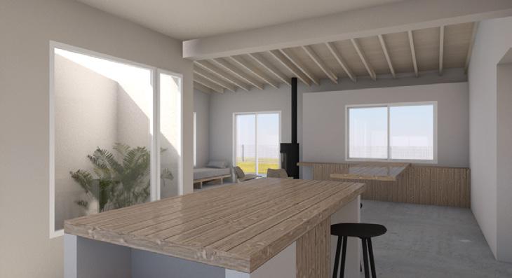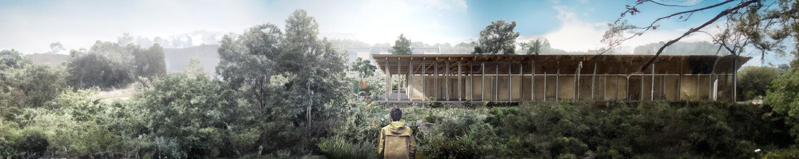 fotografiada y colocada sobre una imagen tomada del sitio elegido para la propuesta, sincronizando los puntos de vista y la escala del proyecto y su contexto. El algoritmo ha completado el paisaje en la zona solicitada,