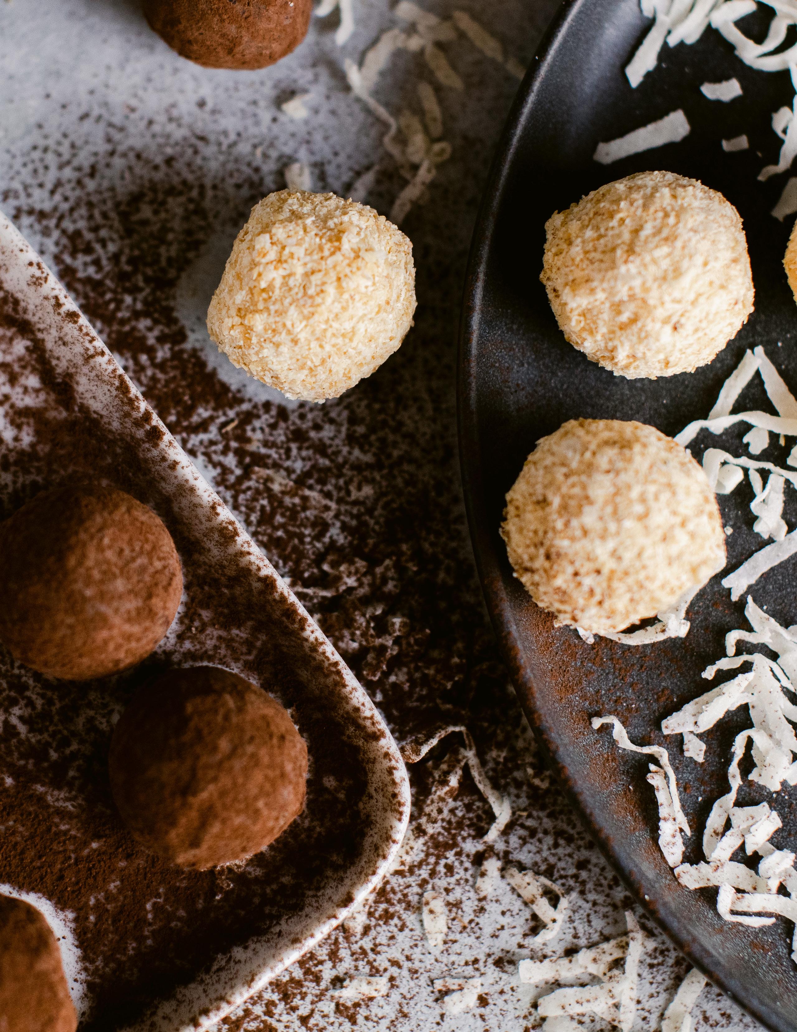 Hand-poured, ornately decorated truffles blended with infused fresh cream and the essence of exotic extracts. Each truffle is delicately dipped into one of the three chocolate couvertures.