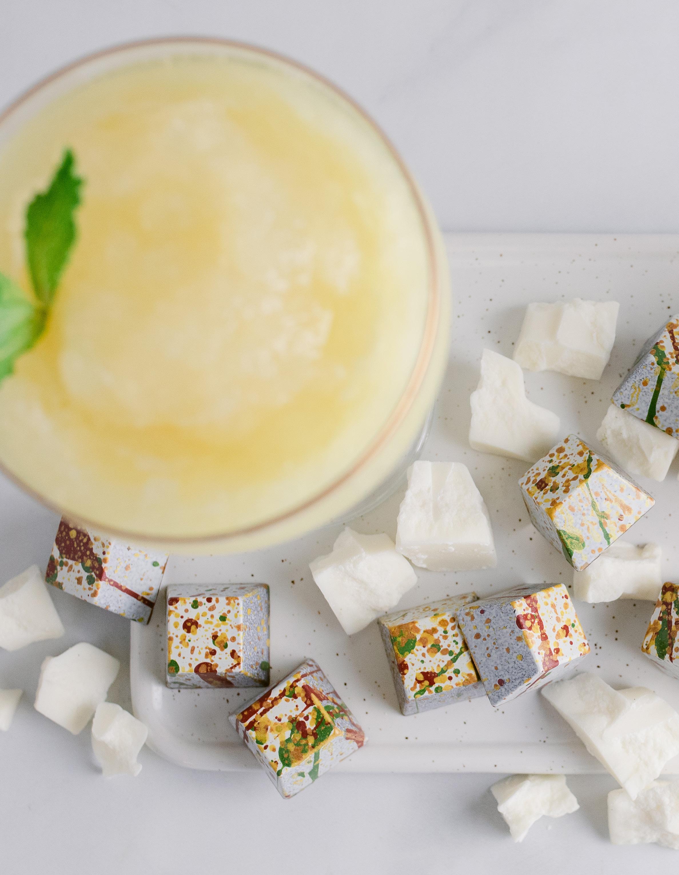 Hand-painted dark chocolate shell filled with dark chocolate ganache infused with Meyer lemon and rum. 96-COUNT CASE • WHOLESALE 1.04 • RETAIL 2.00