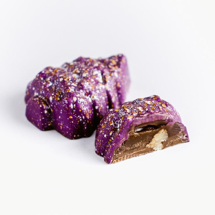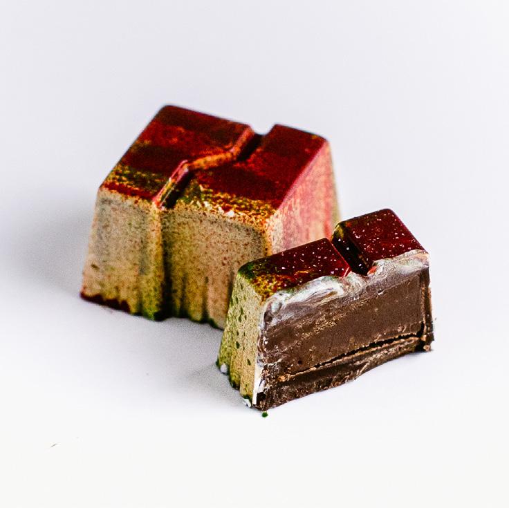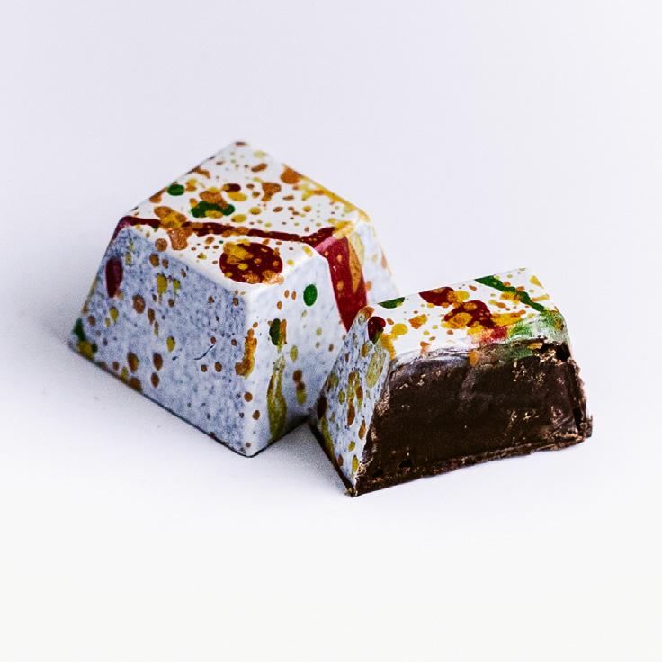Hand-painted dark chocolate shell filled with buttery house-made caramel infused with blood orange 96-COUNT CASE • RETAIL 2.00