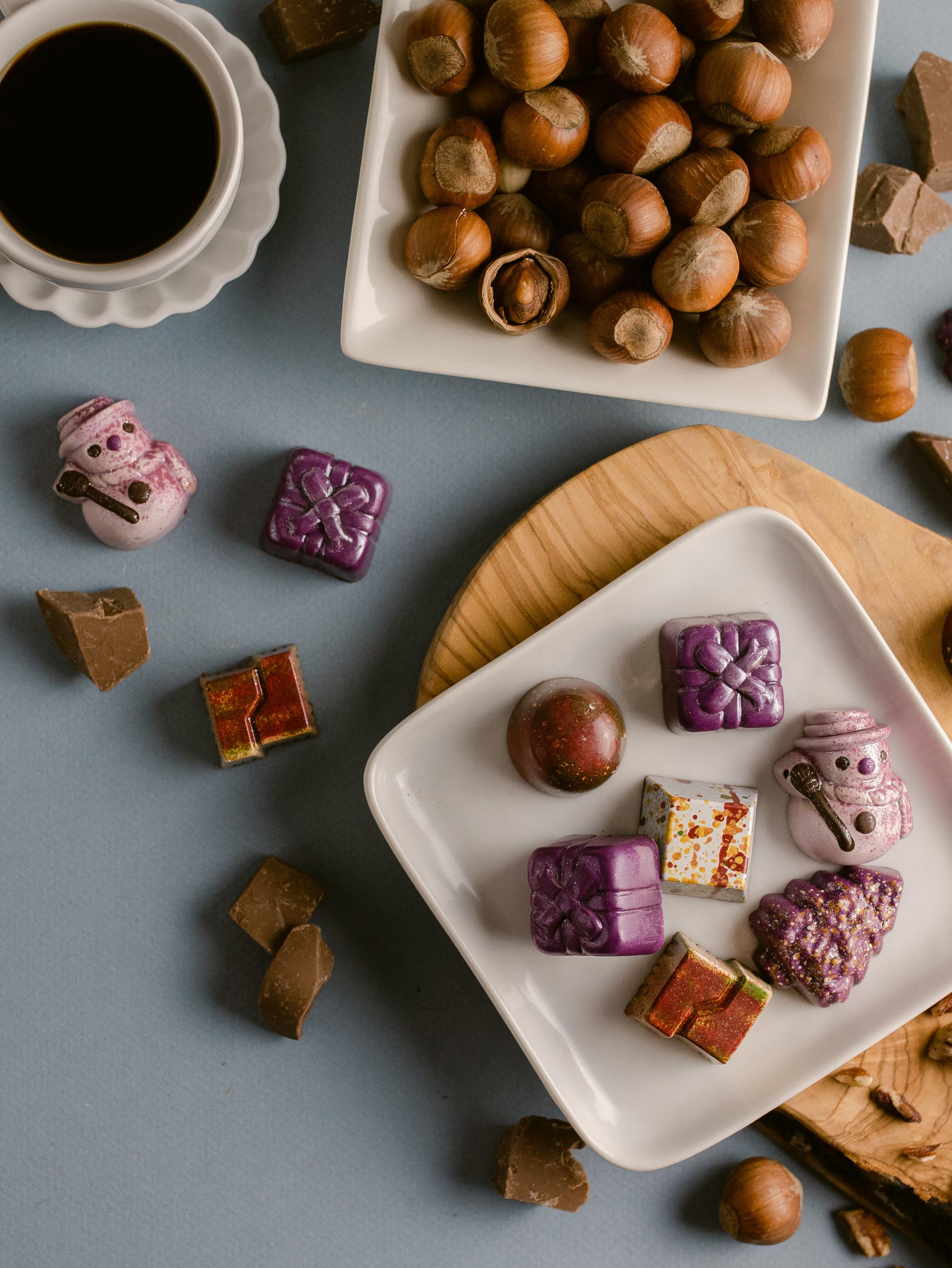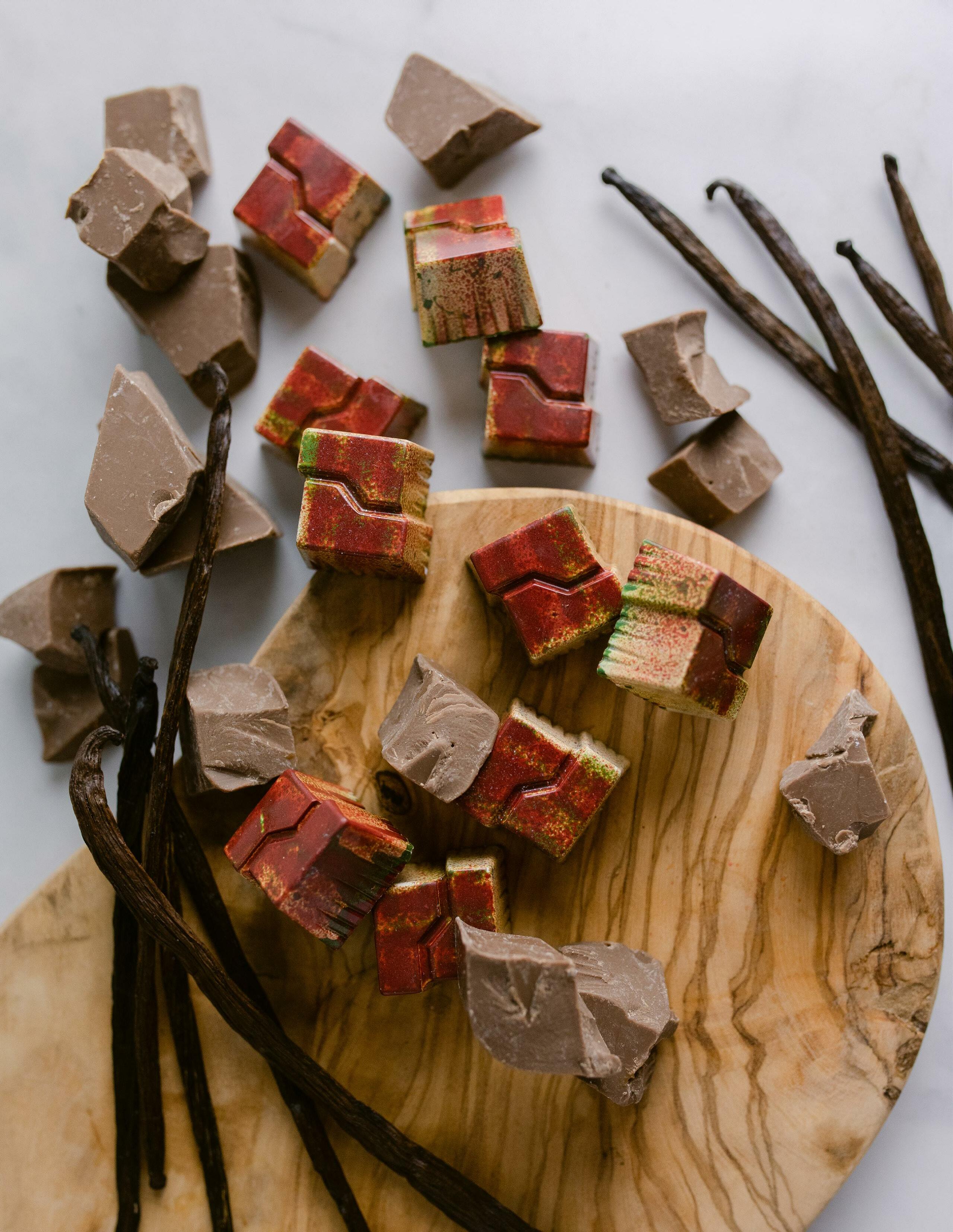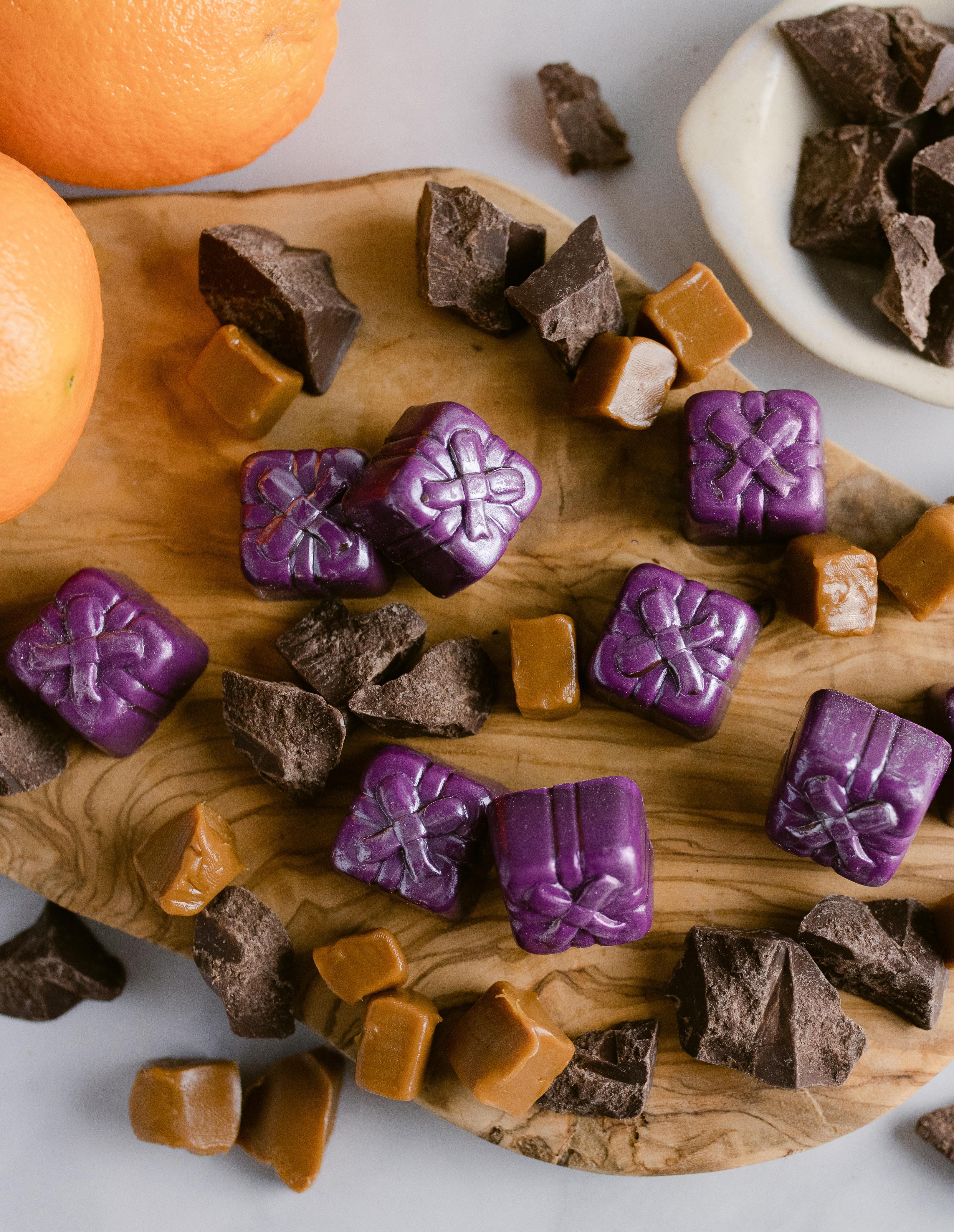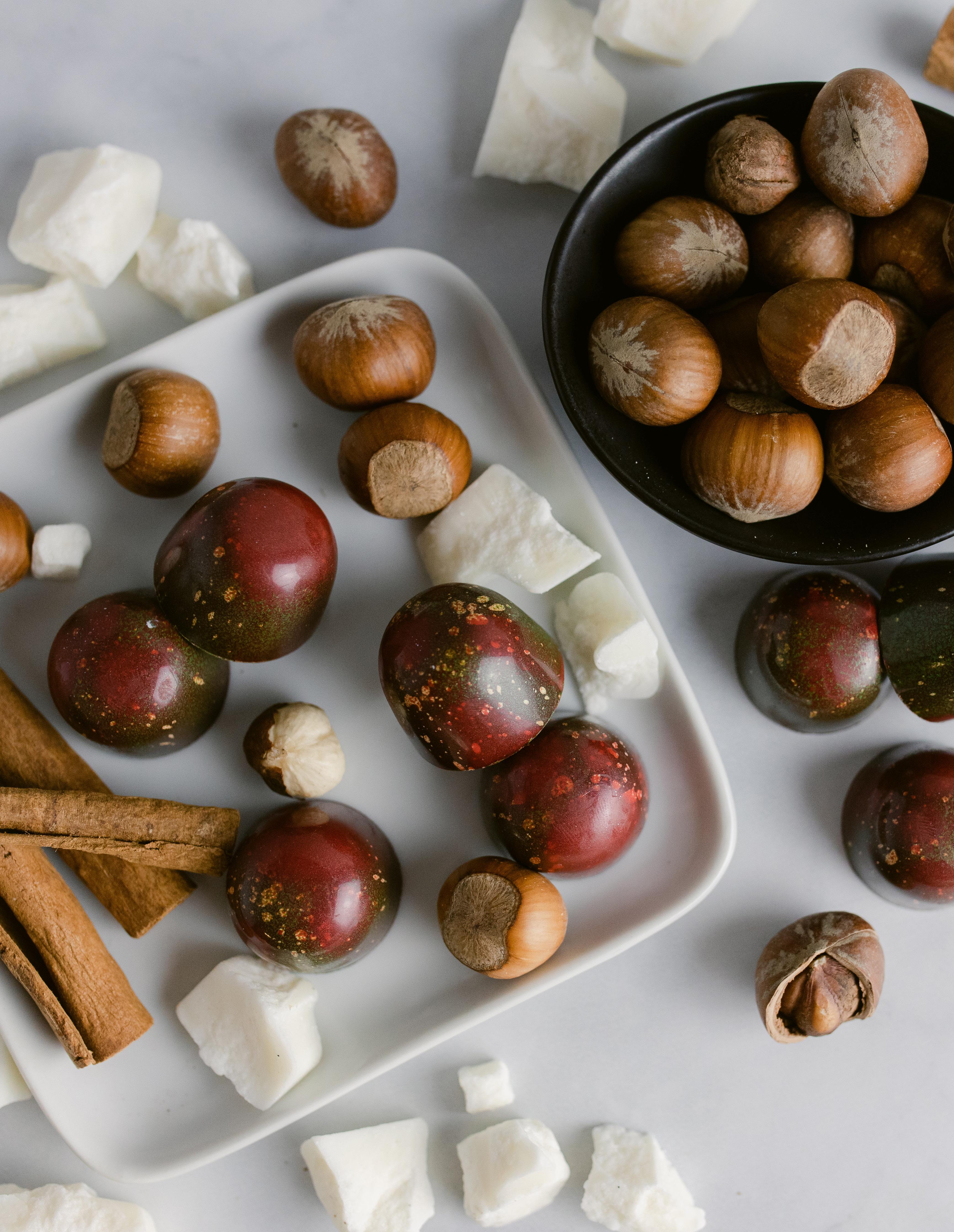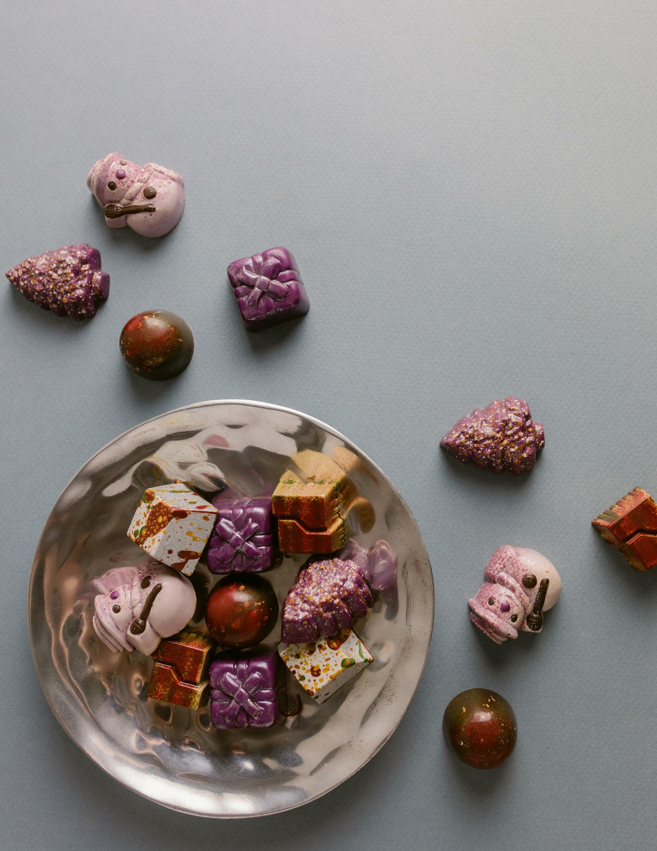Hand-painted gourmet chocolates filled with flavors that are evocative of the sweet nostalgia of the holiday season.