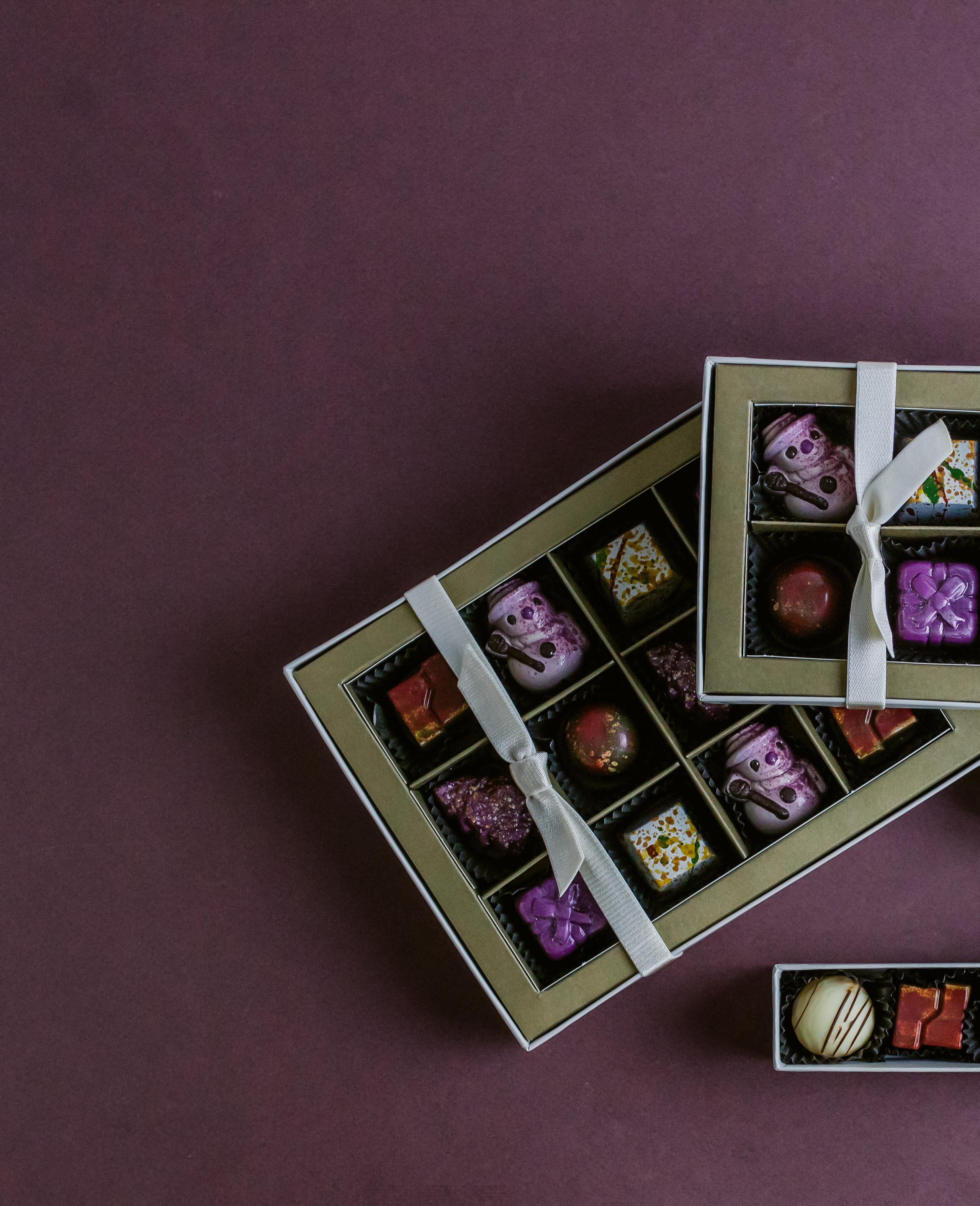 Our boxed chocolate collections feature Ghyslain’s singularly bright colors, imaginative hand-painted decorations and delectable, one-of-a-kind flavors developed to celebrate the Holiday season.