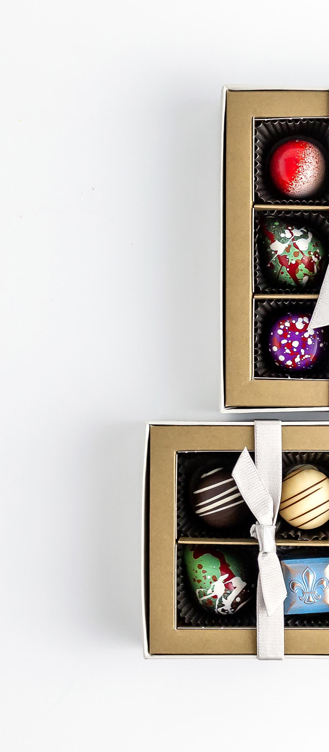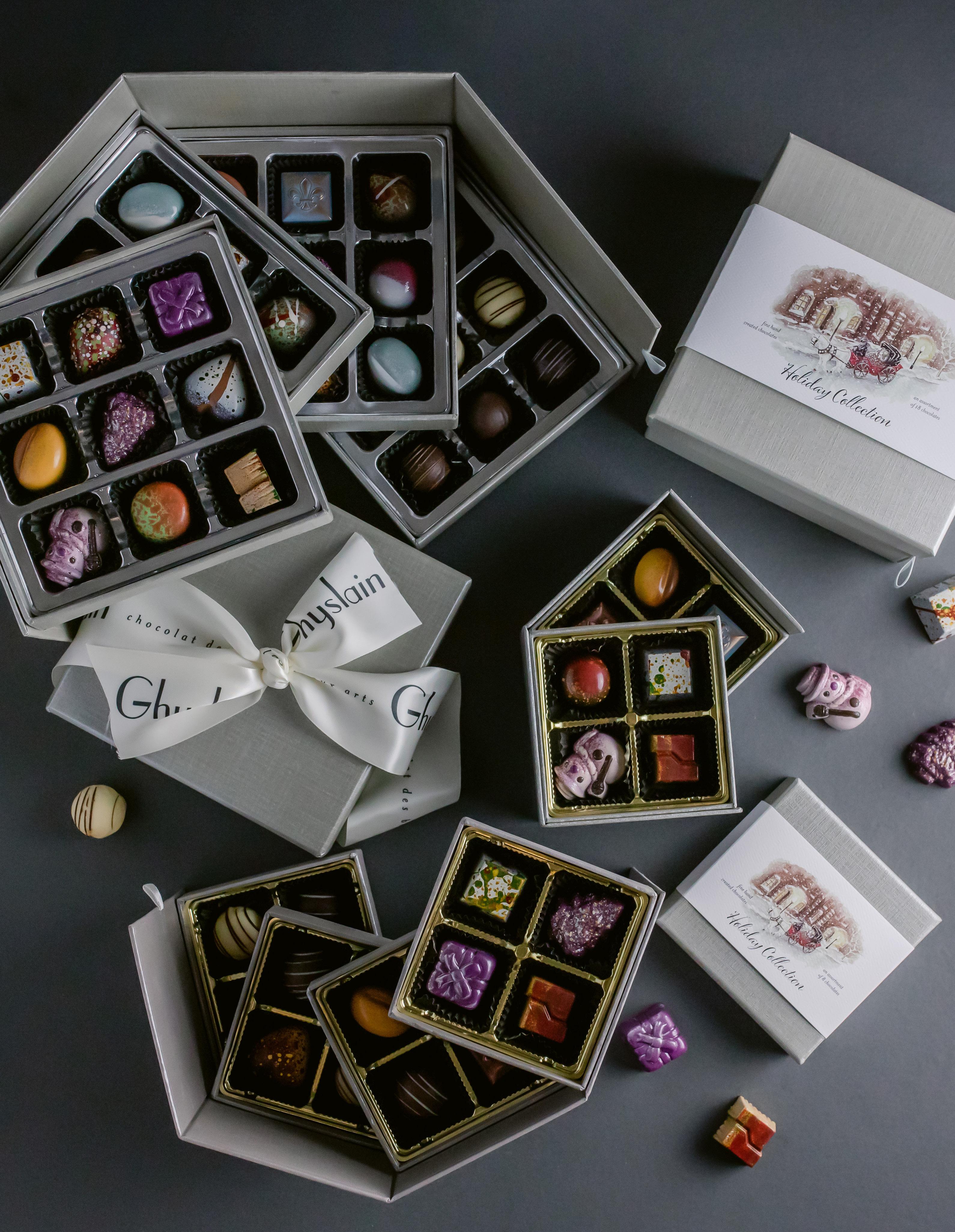 Our Holiday season boxed chocolate collections featuring Ghyslain’s handcrafted gourmet chocolates.