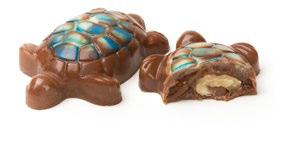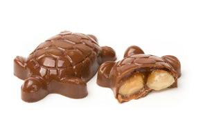 Hand-painted milk chocolate turtles with Ghyslain’s signature caramel and decorated with vibrantly colored pure cocoa butter. Each represents a different toasted gourmet nut delicately tucked into a shell filled with butter caramel.