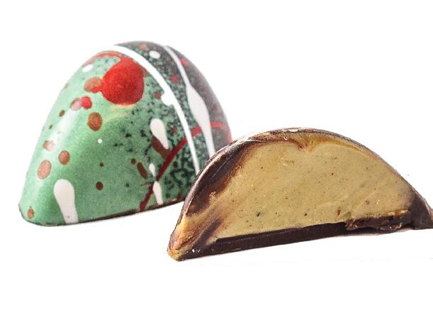 Milk chocolate with Signature butter caramel and toasted pistachio