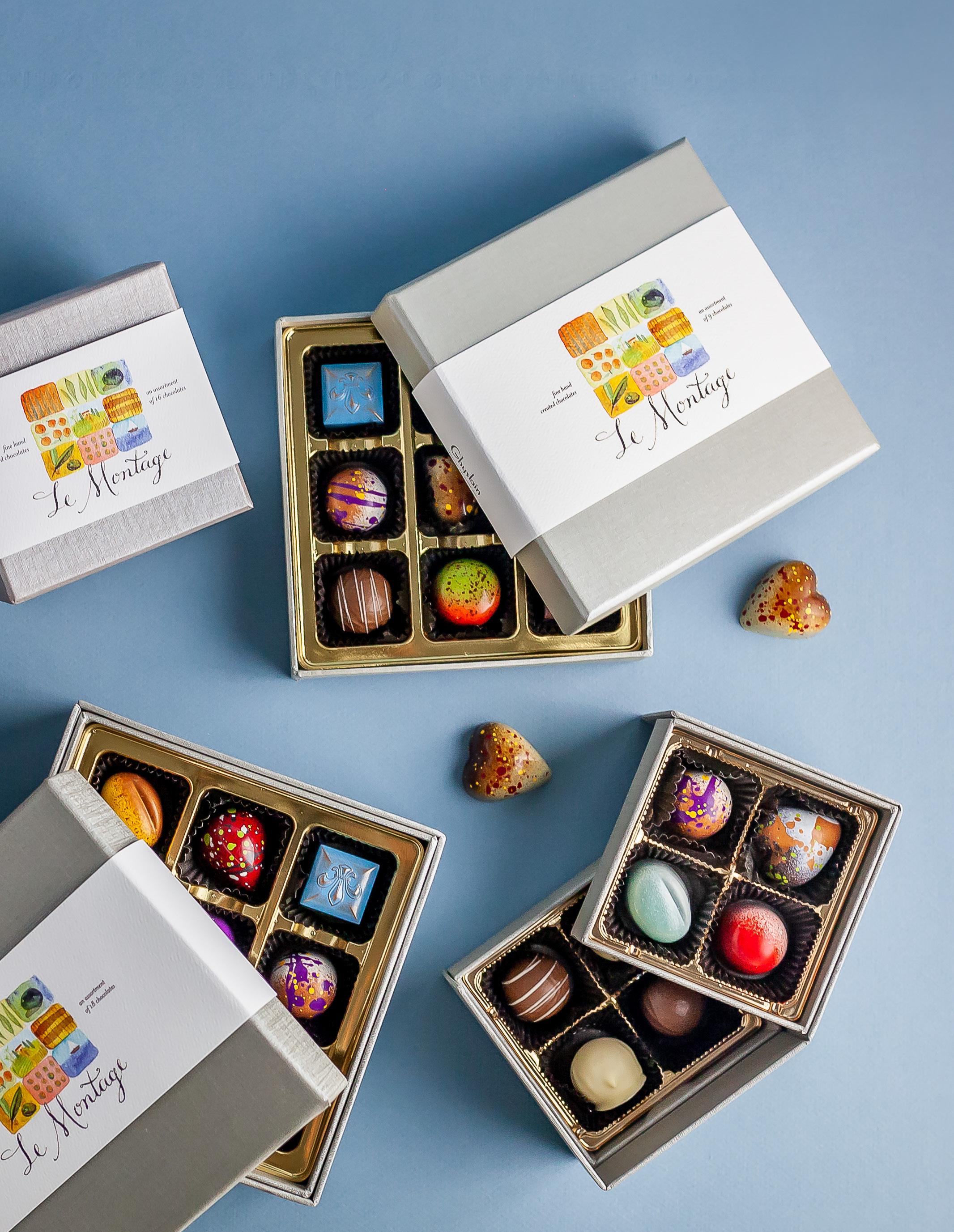 Our handcrafted Le Montage gourmet chocolate assortments give you an array of enchanting pieces taken from Ghyslain’s popular Signature and Truffle Harmonie boxed collections.