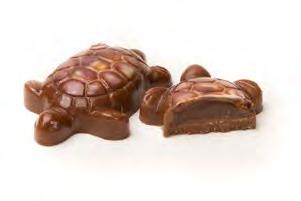 Hand-painted milk chocolate turtles with Ghyslain’s signature caramel and decorated with vibrantly colored pure cocoa butter. Each represents a different toasted gourmet nut delicately tucked into a shell filled with butter caramel.