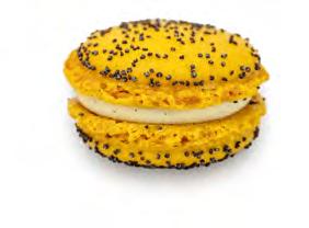 macaron with milk chocolate ganache and a caramel center.