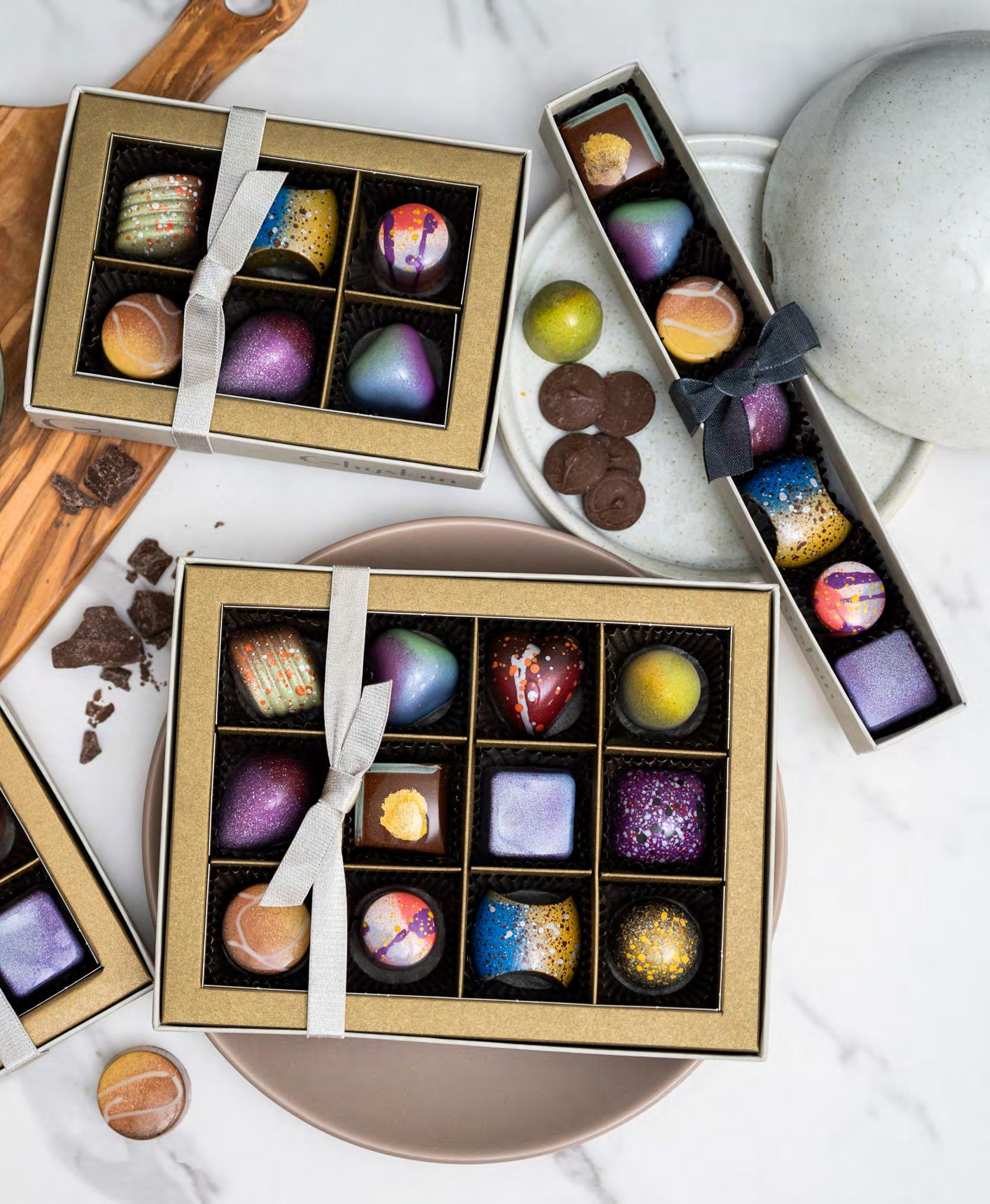 Our hallmark window boxes beautifully present Ghyslain’s Signature hand-painted chocolates feature twelve distinctive chocolates, each one a detailed work of art. Using brilliant colors and featuring unique designs, these individual masterpieces taste as incredible as they look.