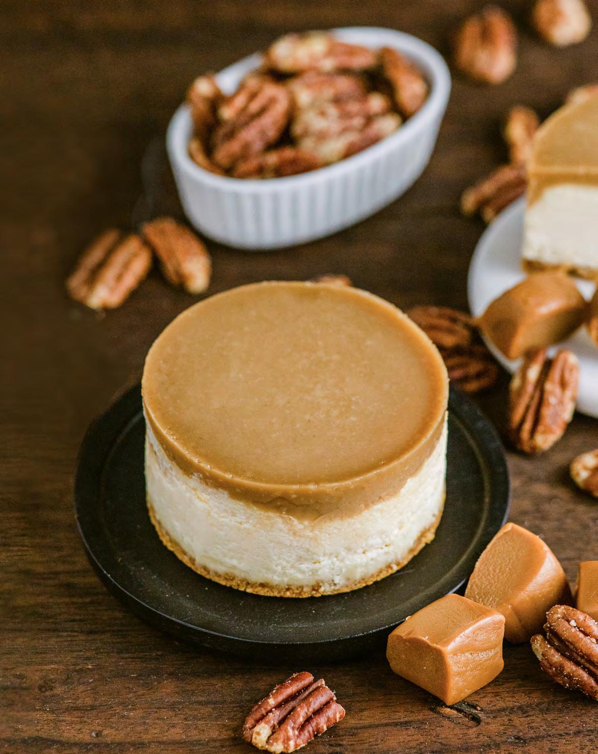 Our Undecorated Bourbon Caramel Pecan Cheesecake is a bourbon cheesecake paired with thick caramel icing and buttery pecans layered on the perfect graham cracker crust. Top with your own signature sauce, or chocolate decor.